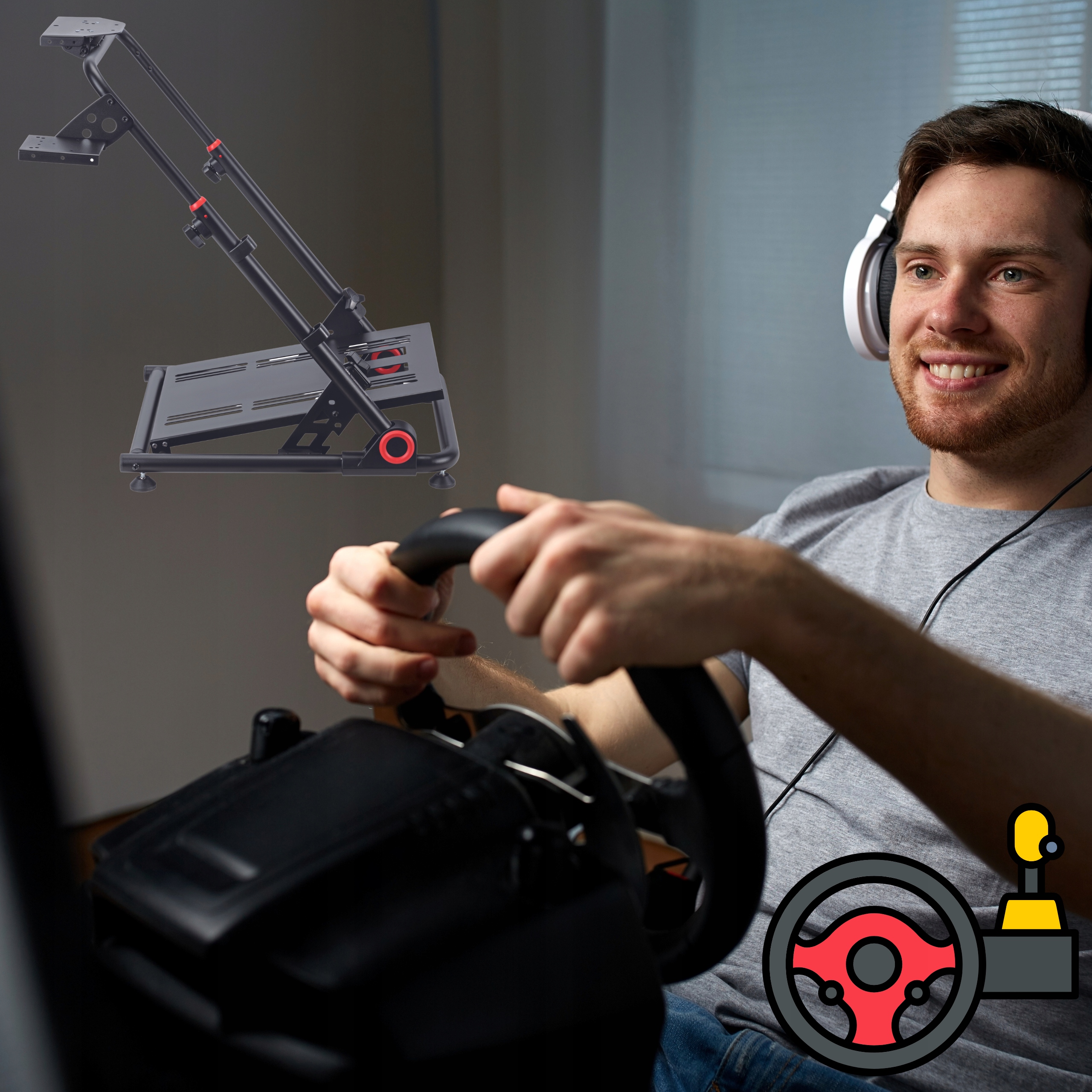 Надійна конструкція: виготовлена зі сталі, наша підставка для керма є міцною та довговічною, що забезпечує стабільність навіть під час найдинамічніших гонок.