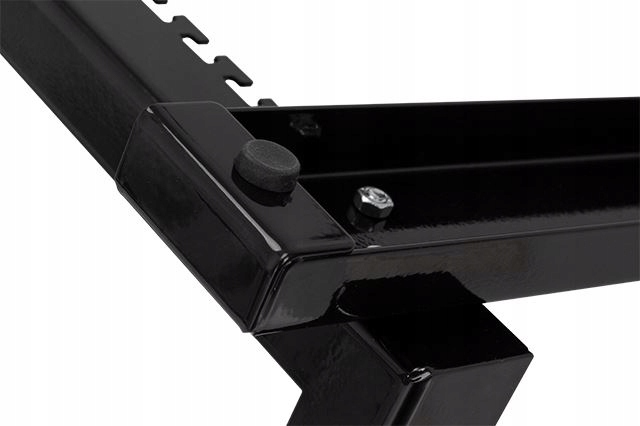Стійка оснащена нековзкими гумками, тому вона не рухається навіть на слизькій поверхні. У набір входить набір із чотирьох гвинтів М5 для з’єднання елементів підставки та два набори гвинтів М6 із сепараторами та шайбами.