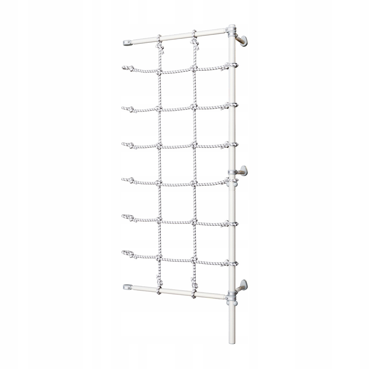 Настінний стовпчик з павутиною - цікавий елемент набору, який не залишить байдужим жодну дитину. Це в першу чергу тренує координацію рухів, хват, витривалість і навіть зчеплення. Він доступний як доповнення до будь-якої гімнастичної драбини. Вироби виготовлені з максимальною ретельністю та продумані до дрібниць. Всі кріплення - гвинти і гайки - приховані під пластиковими заглушками, металеві кінці мають рівні, гладкі поверхні.