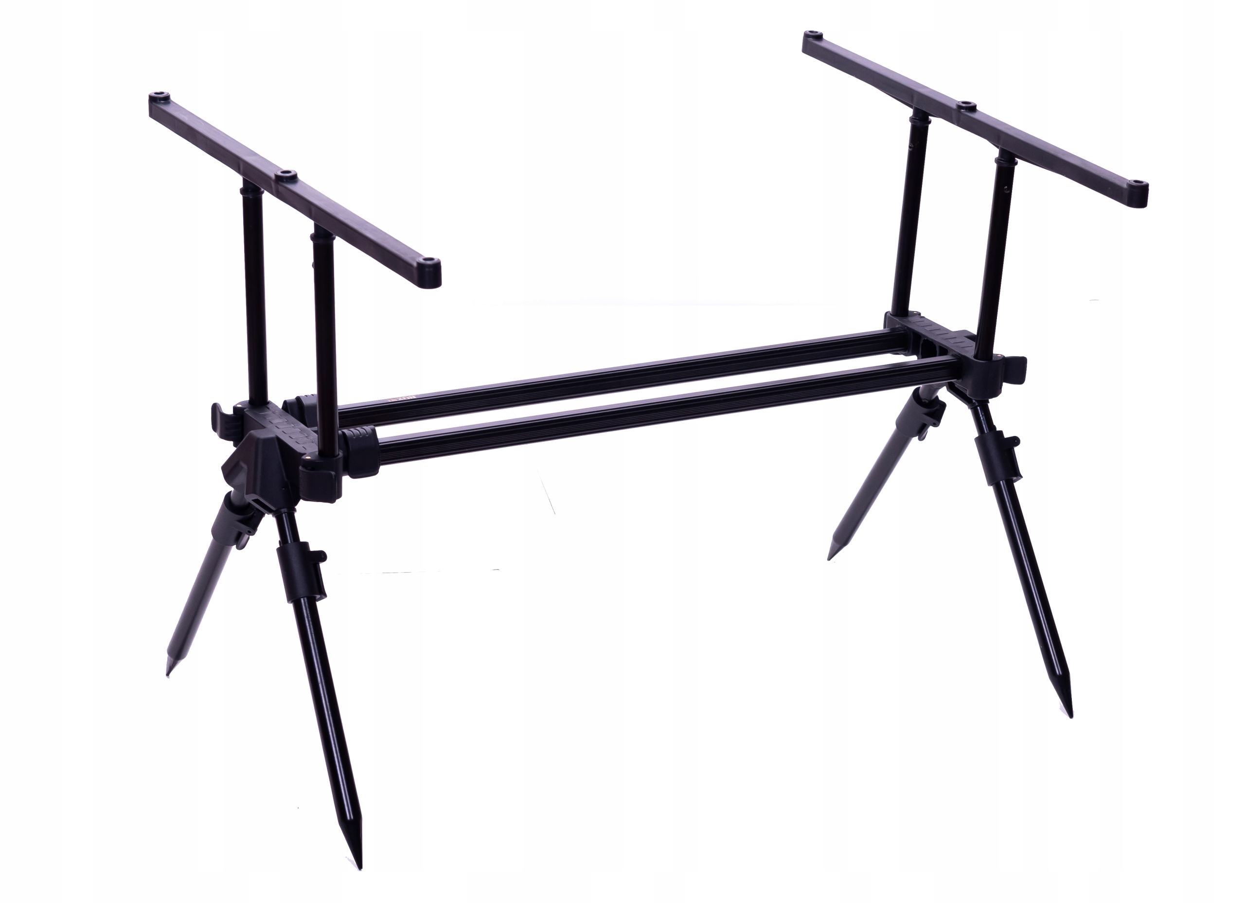 Універсальний родпод для тих, хто шукає стабільний штатив, з можливістю розміщення до 3 вудилищ одночасно, підставка побудований на подвійній рамі. Кут нахилу вудилищ можна регулювати декількома способами, в тому числі регулюючи базбари, довжину ніжок і довжину підставки, що дозволяє адаптуватися до будь-яких умов на рибальському угідді. Підставка чорна або темно-зелена, в залежності від наявності.