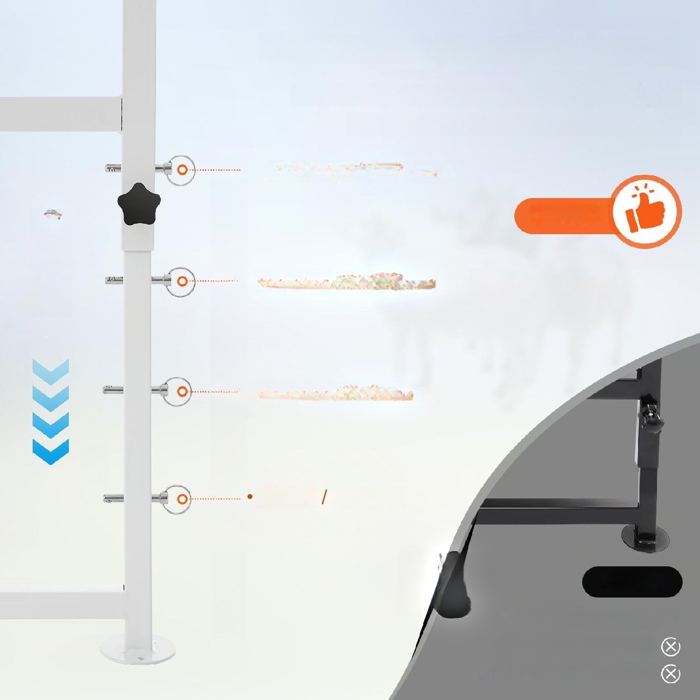 Діапазон регулювання: 38''-65'' (98-165 см). Висоту можна регулювати в залежності від висоти підйому.