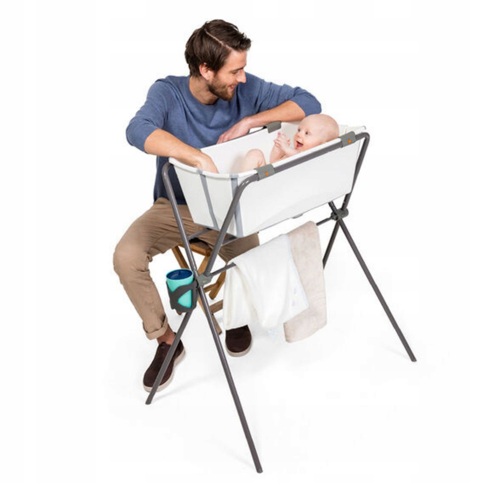 Це одна з перших підставок, яка відповідає новим нормам ЄС щодо підставок для ванн (EN 17072:2018). Його можна використовувати для купання новонароджених від народження до моменту, коли малюк зможе самостійно стояти. З цим міцним, ергономічним допоміжним пристосуванням для купання ви уникнете болю в спині, викликаного стоянням на колінах на підлозі. Створено з урахуванням функціональності, комфорту та зміцнення зв’язку з вашою дитиною.