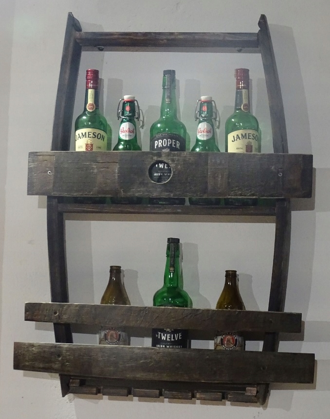 Предметом продажу є підставка, яку видно на фотографіях, полиця для вина чи інших алкогольних напоїв із дубових клепок з оригінальна дубова бочка, в якій роками витримувався віскі.