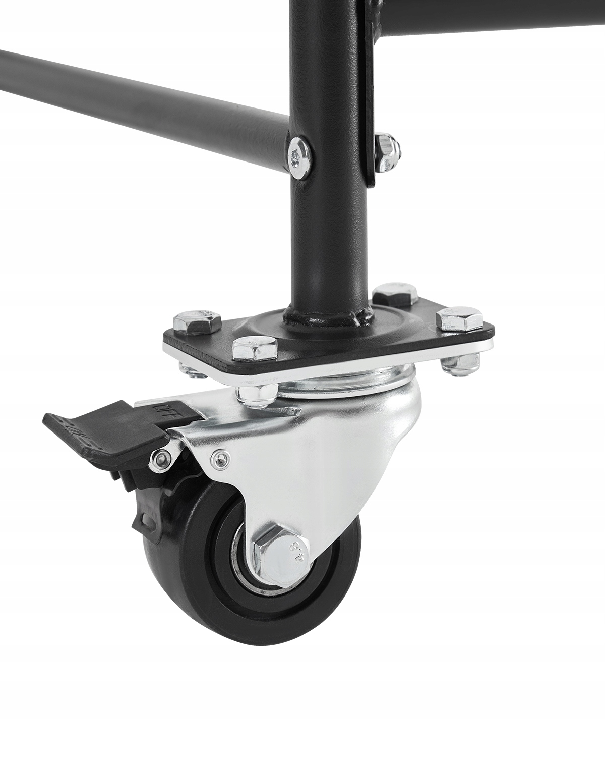 Оснащений чотирма коліщатками, що обертаються на 360°, цей гаражний багажник для шин легко переміщати, навіть якщо він повністю завантажений. Обладнане гальмо надійно утримує тримач шини на місці, коли він не використовується, забезпечуючи стабільність і безпеку.
