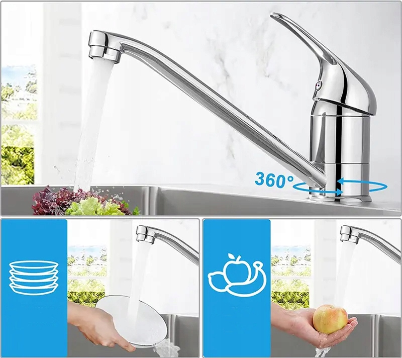 ⭐ Представляємо вам елегантний і стильний змішувач з поворотним виливом. Модель, виконана в сучасному, але класичному стилі, підійде до будь-якого інтер'єру. Завдяки довгому рухливому носику ми можемо легко помити будь-яку каструлю чи кондитерську дошку.