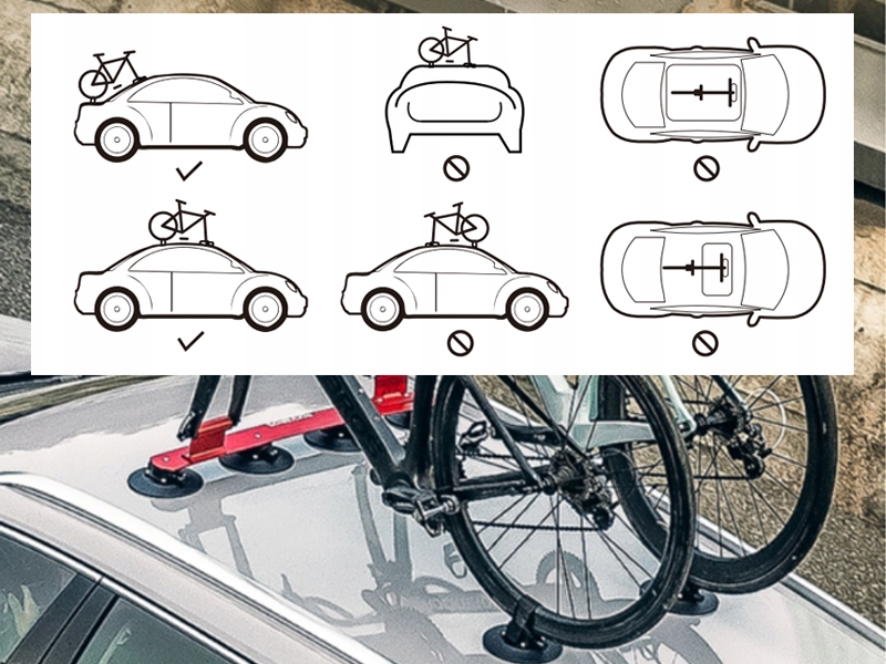 - Гумові присоски: багажник з’єднується з автомобілем за допомогою присосок із вакуумним насосом, який не пошкоджує фарбу автомобіля та забезпечує міцне зчеплення