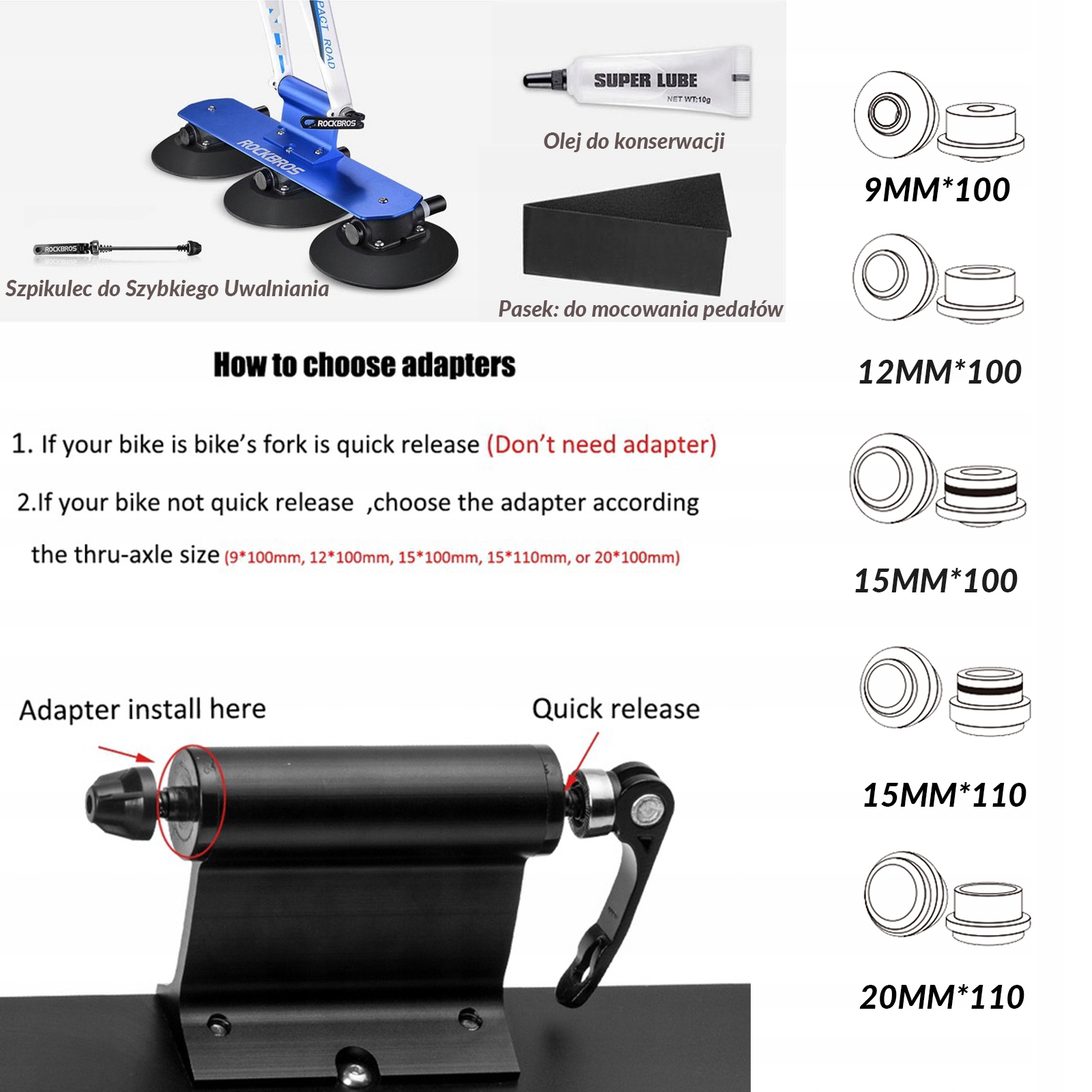 - Велотримач ROCKBROS підходить для велосипедної вилки шириною менше 110 мм. Ви можете легко встановити велосипед за допомогою швидкого від’єднання. Для велосипедів із наскрізною віссю потрібно придбати адаптер окремо.