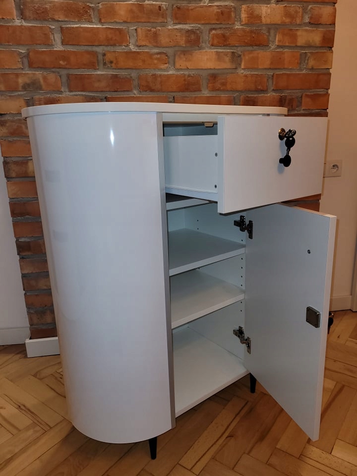 Дуже гарний, міцний і функціональний предмет меблів для глянцевої білої стійки. p>