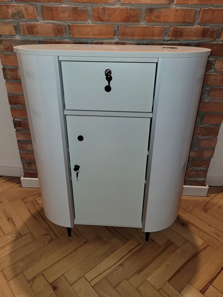 Всередині стійки є полиця, ящик для ключа, закрита шафа для ключа.
