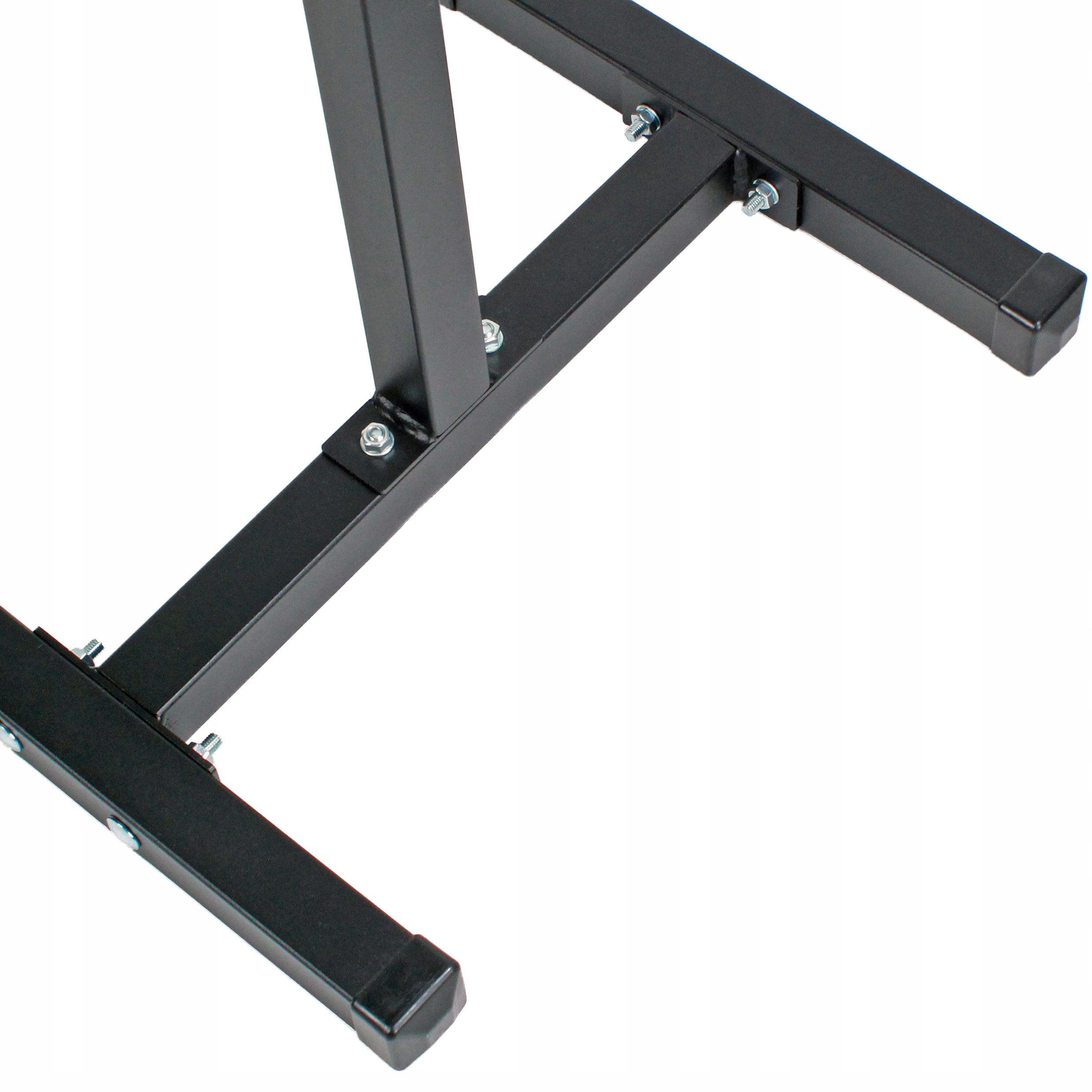 Довговічність і надійність - підставки мають H-подібну основу, що забезпечує максимальну стійкість. Регулювання висоти за допомогою гвинта з накатною головкою та англійської шпильки гарантує повну безпеку занять зі штангою.