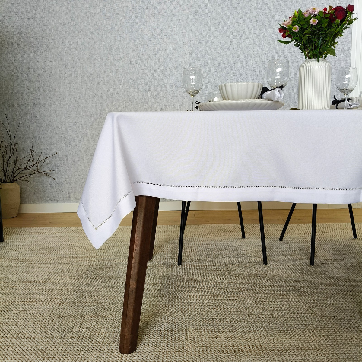 Скатертина білої Хана ідеально підходить для свят, сімейних святкувань або романтичних обідів . Його позачасова елегантність підкреслить характер кожної миті та додасть святкову атмосферу кожній зустрічі за столом.