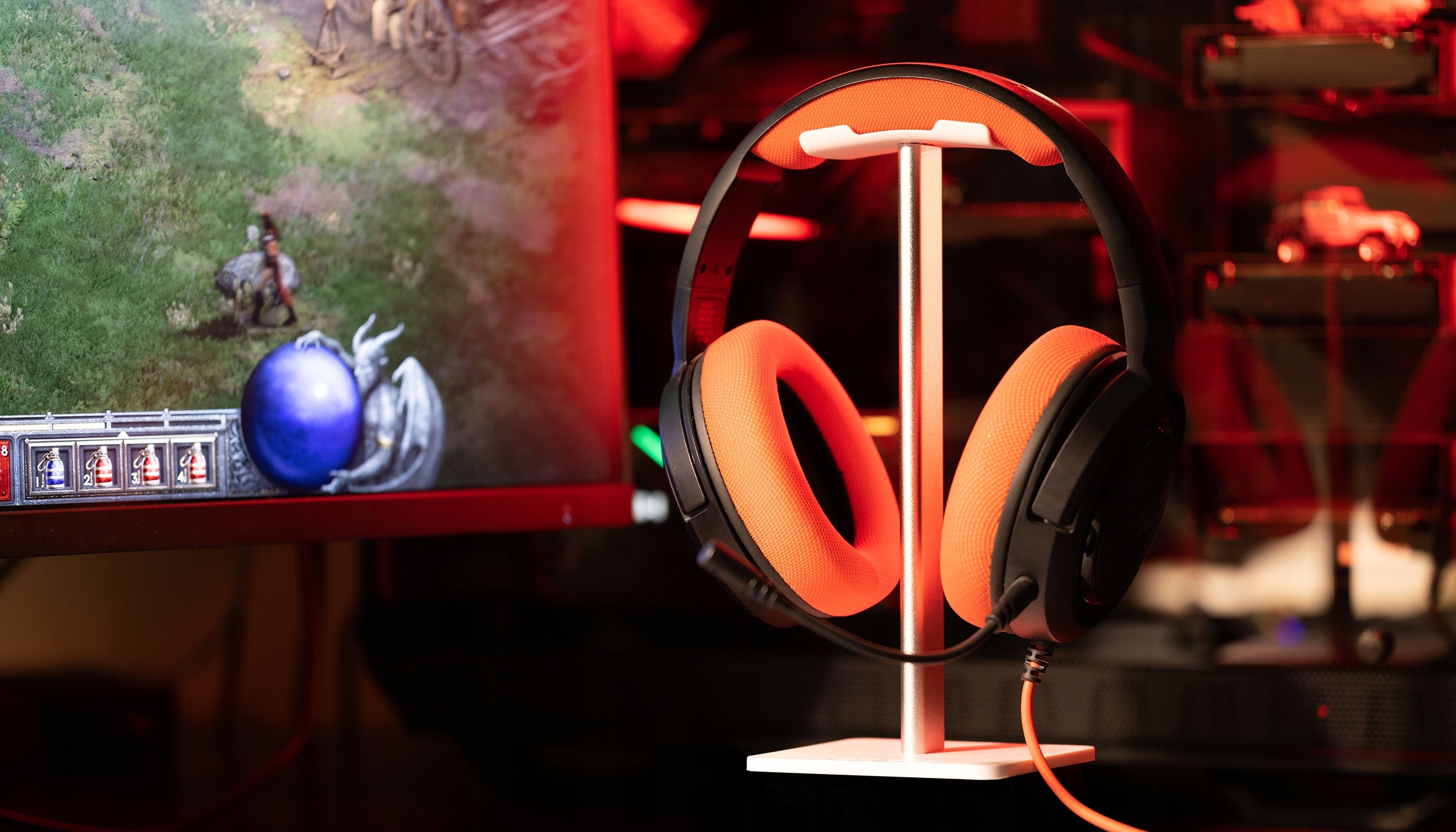 Підставка сумісна з навушниками, ширина пов’язки на голові яких не перевищує 4,5 см, а висота — 21 см.