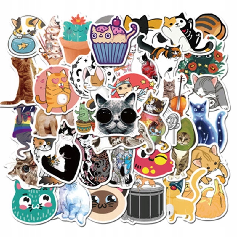 СТИКЕР МІКС НАЛЕЙКИ КОТІВ ДЛЯ НОУТБУКА ВЕЛОСИПЕД 50 шт