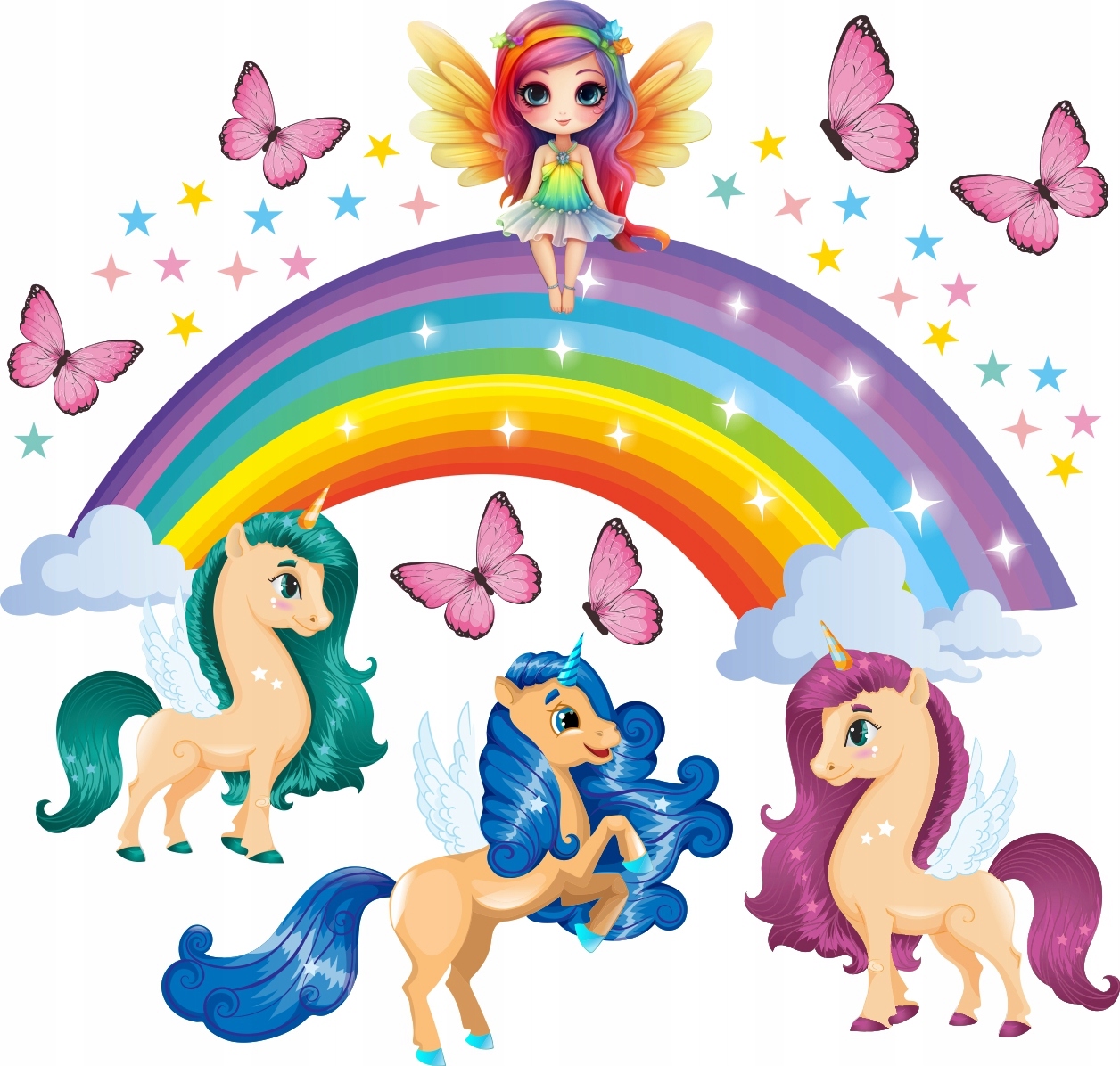СТІКЕРИ ЄДИНОРОГИ ВЕСЕЛКА ФЕЯ 100х100см JT23