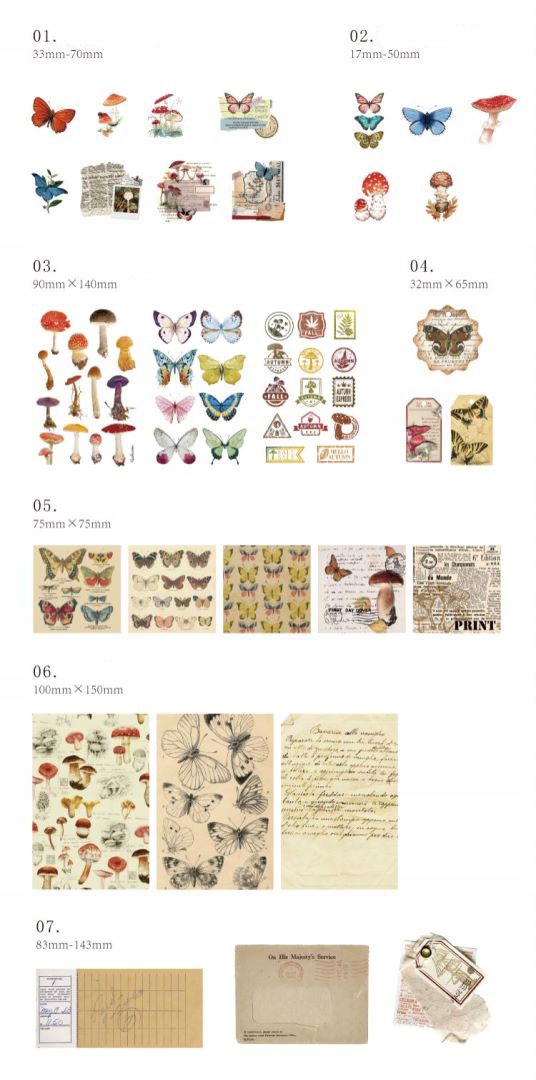 • ✅ ТЕМАТИКА РЕТРО - набір стосується ретро-тем і включає, серед іншого: квіти, рослини, метелики, статті старої преси та багато іншого інші