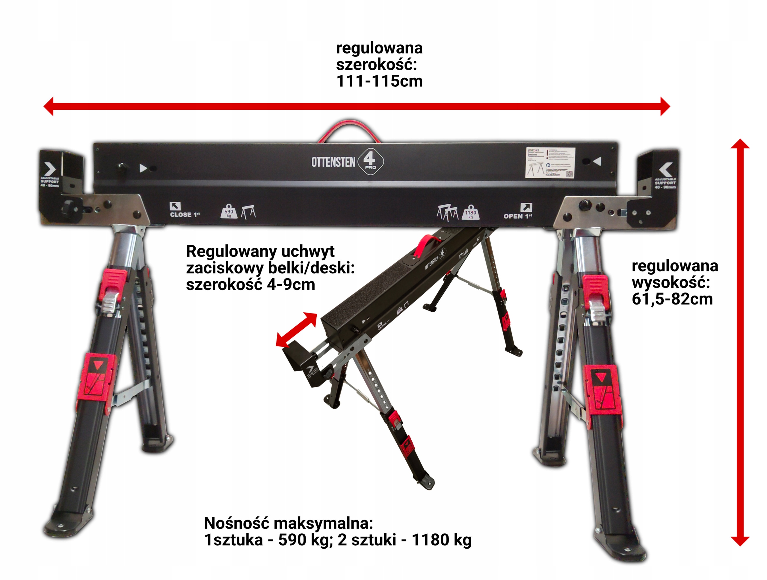- Регульована висота в діапазоні 61,5-82 см - адаптація до різних застосувань і зручна робота - 8 рівнів, закритих тріскачкою.