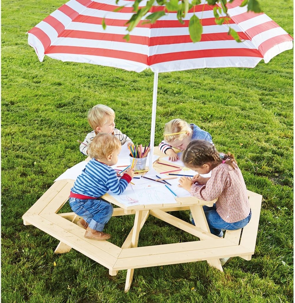 - Дитячий комплект для сидіння Nicki 6-кутовий, що складається з 6 лавок та 1 столика, забезпечує простір для до 6 дітей.Виготовлені з масиву необробленої деревини хвойних порід; розміри Д 162 х Ш 162 х В 50 см, вага 19,3 кг, потрібна збірка, артикул: 201038