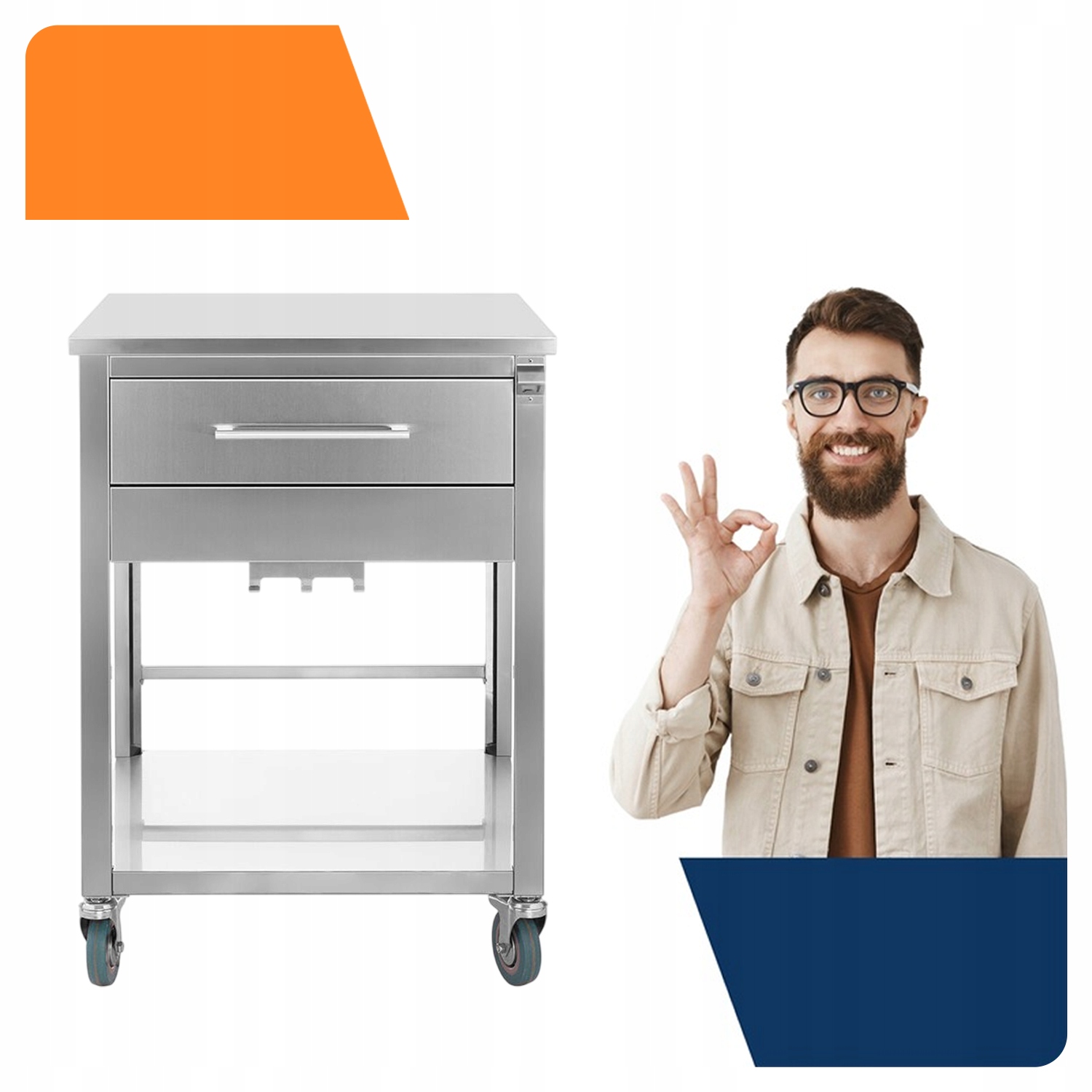 ➡️ Найвища міцність і стабільність: Весь стіл виготовлено з високоякісного полірованого кислотостійкого листового металу (AISI 304). Конструкція забезпечує вантажопідйомність до 120 кг.