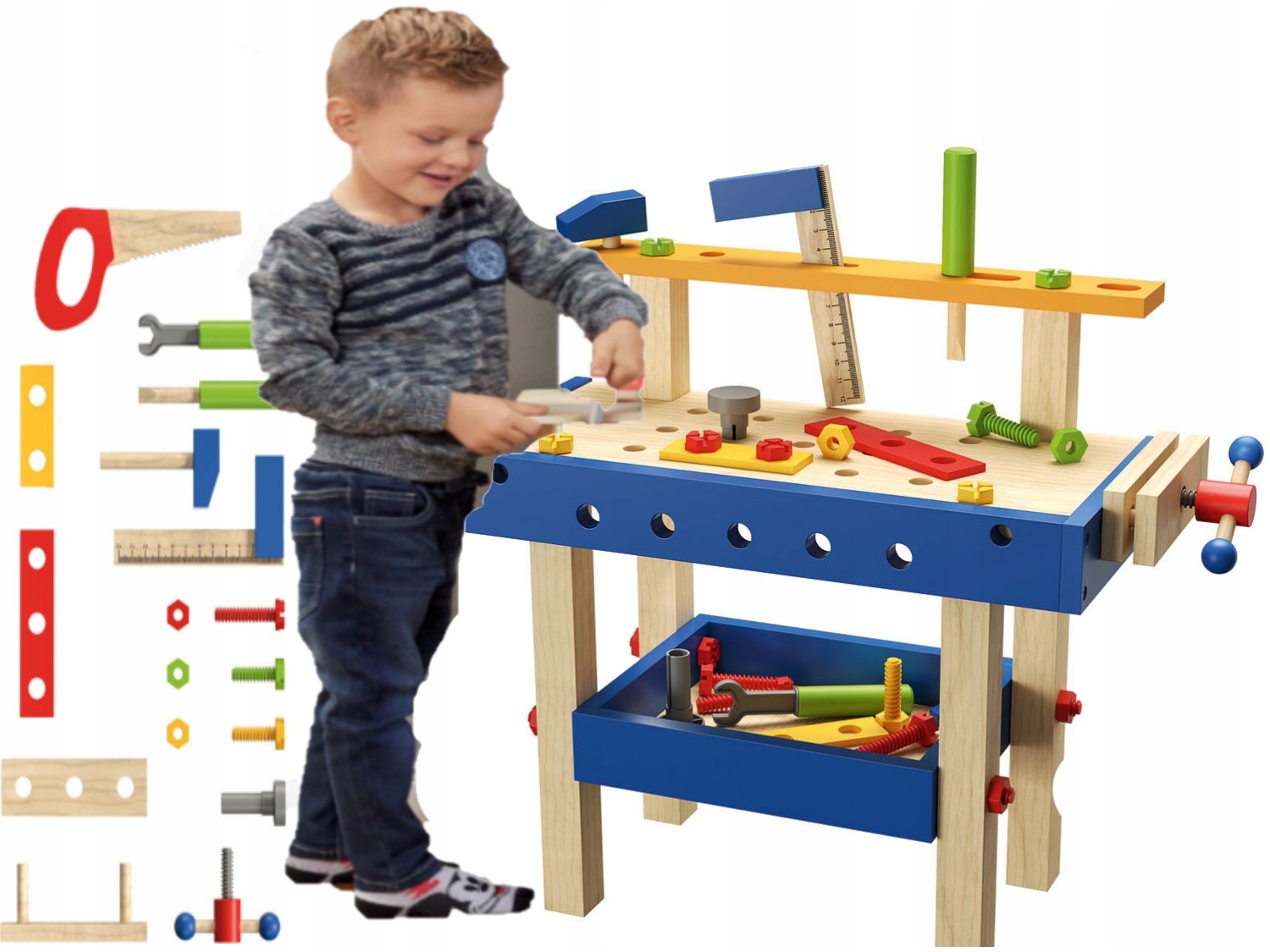Дерев'яна конструкція виглядає та є набагато кращою для навколишнього середовища, ніж пластикові іграшки, які часом неприємно пахнуть.Майстерня виготовлена з дерева спеціально для дітей, тому ви можете купувати її з чистою совістю. Більше того, діти будуть у захваті.