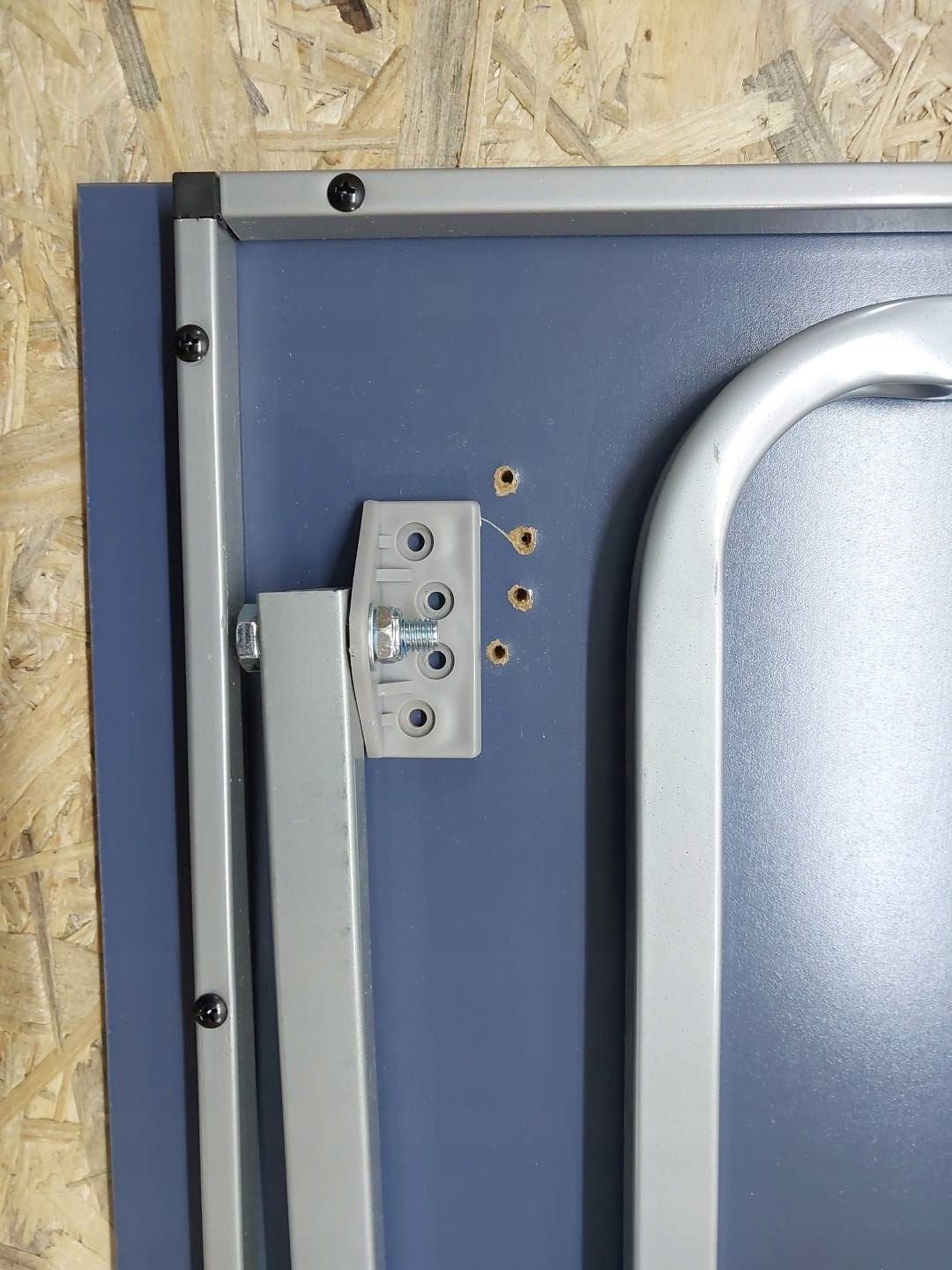 СТІЛ З НЕЩО ПОШКОДЖЕНИМ ОДНИМ КУТОМ, ЗЛАМАНОЮ НОЖКОЮ ВІД КРІПЛЕННЯ СІТКИ ТА ВИЙМАНИМИ ГВИНТАМИ З ОДНОГО СТОРОНУ НІЖКИ (ДВА ГВИНТИ В КОРОБЦІ). БУДЬ ЛАСКА, ПЕРЕГЛЯНІТЬ РЕАЛЬНІ ФОТО
