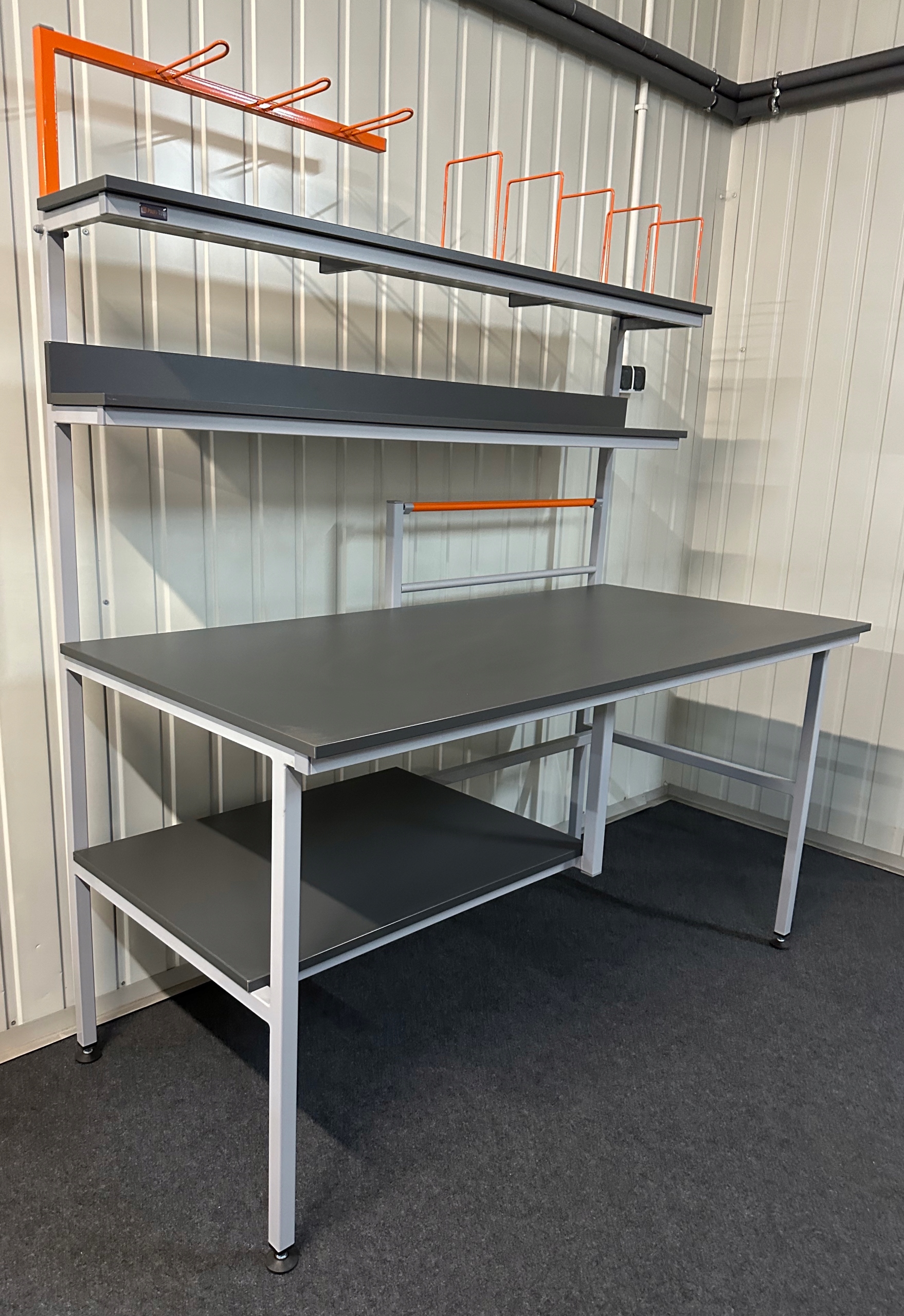 Столи та підставки виготовлені зі сталевих профілів, які були довго захищені порошковим покриттям, краї профілів заповнені дюбелями ПВХ.