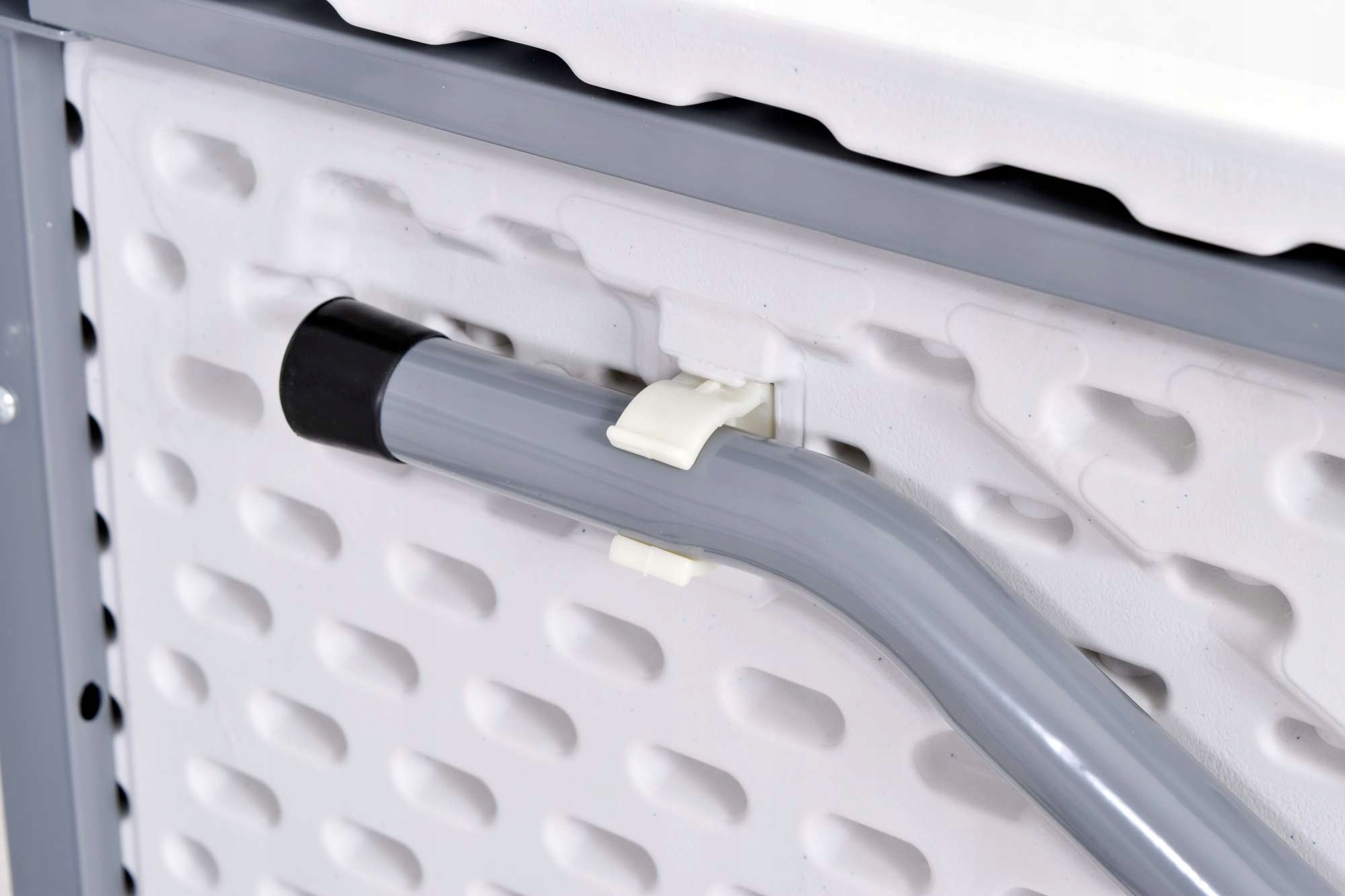 Імплосудний стіл, складений у білій валізі 240 см Модель: Імпло Розмір: 240 см Колір: Білий ⭐ 100% водонепроникний верх ⭐ Складний стіл у валізі ⭐ Суцільна система складання та розгортання ⭐ Купівля у виробника Дуже практичний та легкий стіл харчування. Структура виготовлена з розфарбованого порошком металу. Верх виготовлений із сильного пластику. Після складання стіл створює практичну валізу, завдяки якій він займає невеликий простір і його легко переносити. Ідеально підходить для кемпінгу. Завдяки унікальній конструкції, вся структура ховається в верхній частині столу, створюючи ергономічну валізу. Пластик найвищої якості, що використовується для виробництва стільниці, робить його найсильнішим із запропонованих на польському ринку. Властивості Порошок -розфарбований металевий каркас Верх виготовлений з сильного пластику HDPE Зручна ручка носіння Складений у валізу Анти -сяві ноги Блокування перед складанням Максимальна ємність навантаження: 150 кг Розміри продукту Розподілена таблиця: Довжина: 240 см Ширина: 75 см Висота до верхньої частини стільниці: 73,5 см Висота до нижньої частини стільниці: 69,5 см Верхня товщина на околиці: 4 см Товщина металевої рами: 25 мм Стол, складений у валізу: Висота: 74 см Ширина: 120 см Товщина: 9 см Додаткова інформація Представлені кольори слід обробляти для ілюстративних - вони можуть відрізнятися від реальних завдяки різним налаштуванням монітора та процесу обробки. Фактичні розміри можуть відрізнятися від вищезазначеного. Толерантність до помилок може бути +/- 5%. Увага Інтегральною частиною набору є зовнішня упаковка - картон. Маркування на коробці може відрізнятися через різні серії постачання. Позначка: ehockers Код товару: 064377mg Ean Code: 5905523064377 Колір: білий Висота: 73,5 см Ширина: 240 см Верхній матеріал: HDPE Поліетилен Матеріал ноги: Порошковий намальований метал Доля: Їдальня кухня Кемпінг ресторан Для самостійного складання: Так