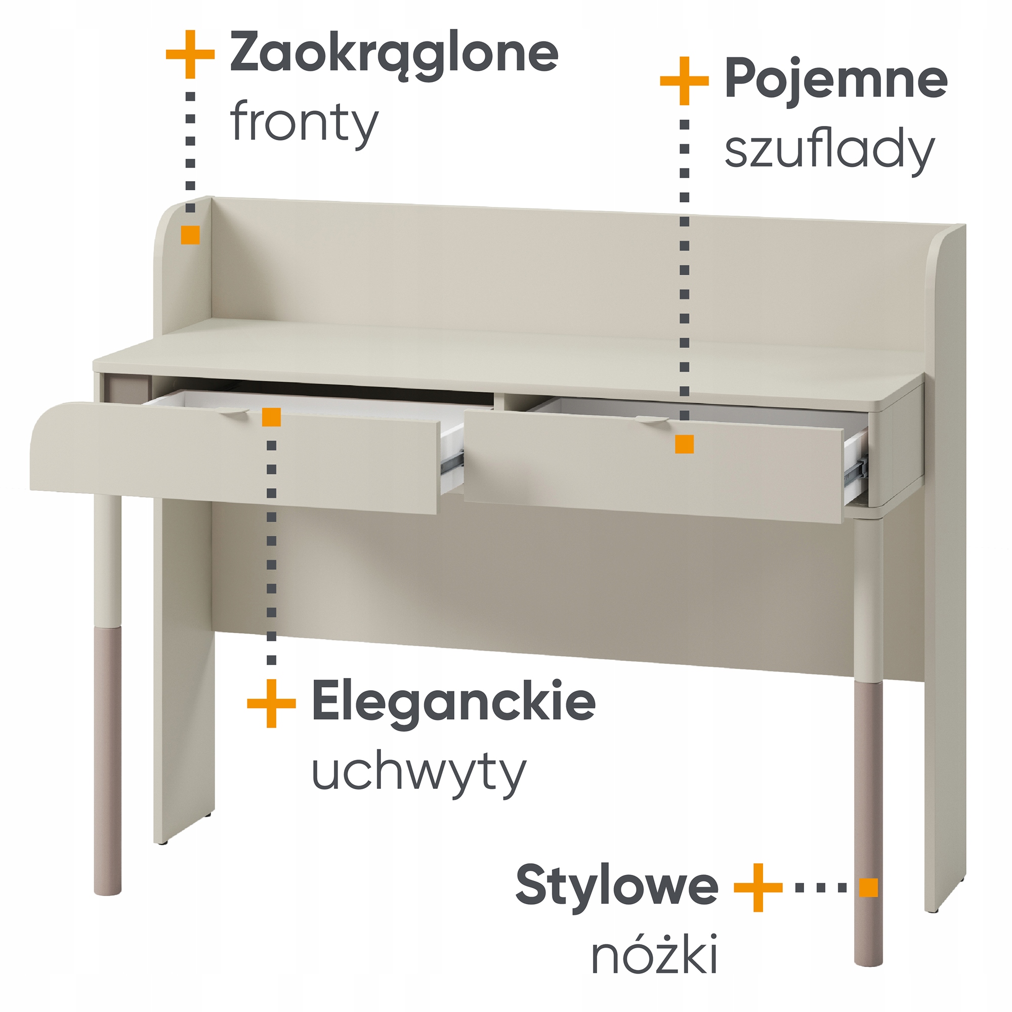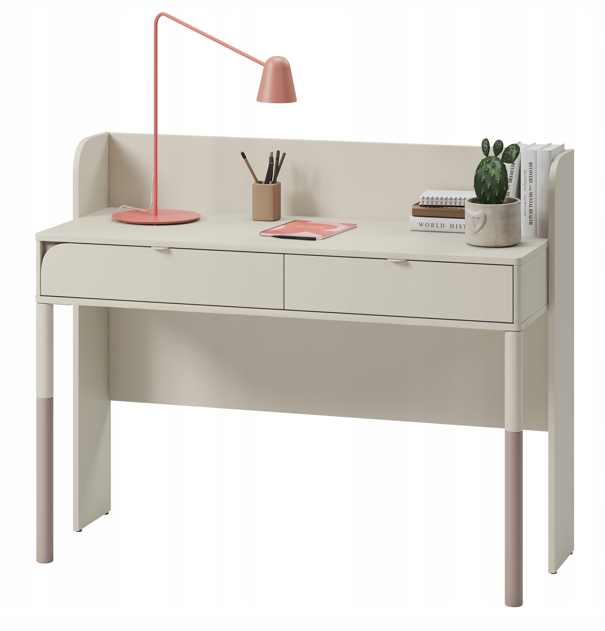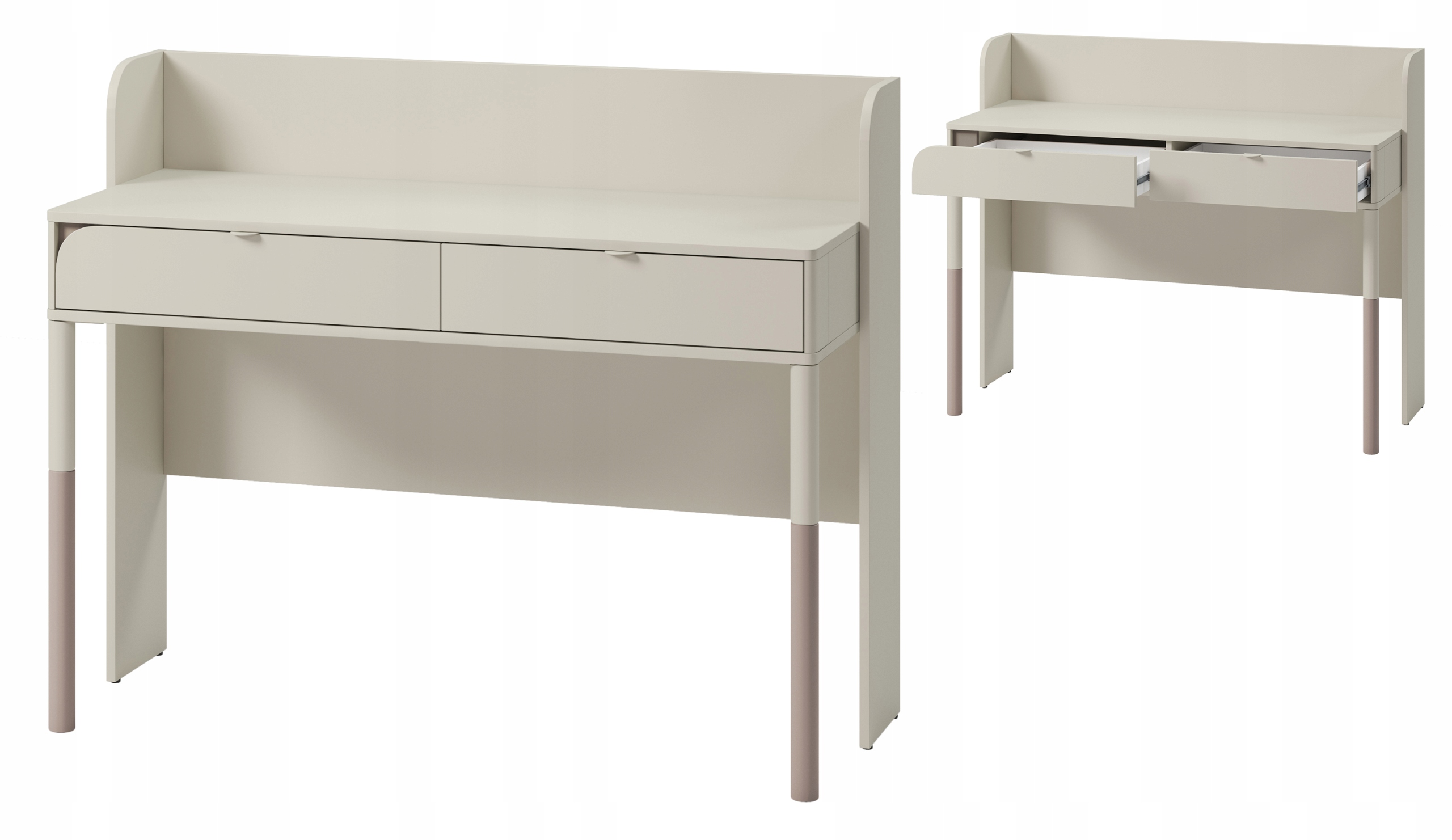 Шукаєте функціональний і стильний письмовий стіл для підлітка, який не тільки забезпечить їй комфортне місце для навчання, але й стане модним елементом декору її кімнати? Наш письмовий стіл для підлітків з колекції HARMONY виправдає всі ваші очікування, поєднуючи в собі практичність, комфорт і естетику. Він оснащений двома місткими висувними ящиками, які забезпечують достатньо місця для зберігання підручників, письмового приладдя та інших необхідних аксесуарів. Це гарантує, що ваш підліток матиме під рукою все необхідне для цілеспрямованого навчання. Меблі тримаються на тонких ніжках, що робить їх надзвичайно легкими та водночас сучасними. Модне поєднання кольорів кішаміру та трюфеля дозволяє колекції вписатися в дизайн кімнати як маленької, так і старшої дівчинки.