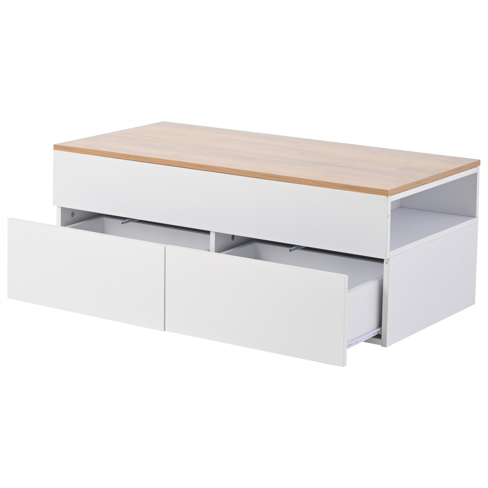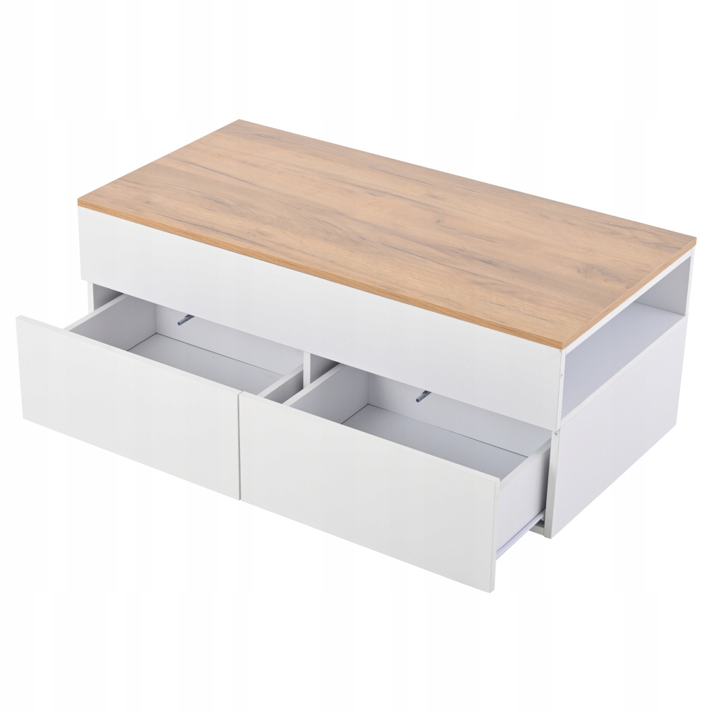 Подвійна шухляда: конструкція з двома шухлядами забезпечує достатньо місця для зберігання дрібних речей у вітальні. Пульти дистанційного керування, навушники, закуски та інші дрібні предмети можна зберігати окремо, щоб ваша вітальня була охайною.