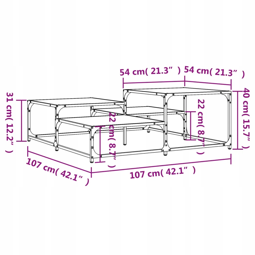 - Функція демонстрації: Цей квадратний журнальний столик складається з кількох стільниць, розташованих на різній висоті, що дозволяє розміщувати різні декоративні елементи на кожній з них.