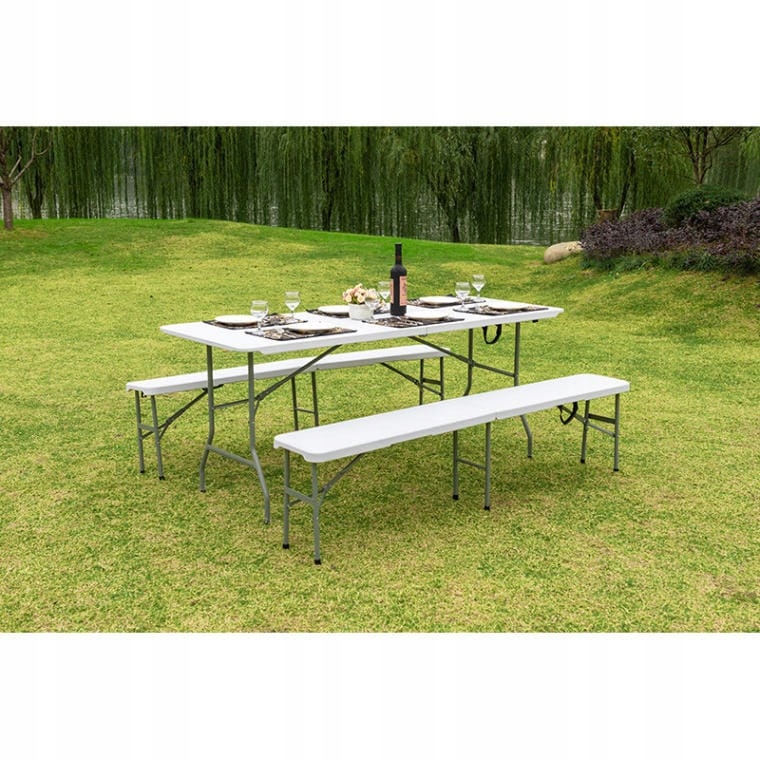 Велика таблиця харчування на 180 см - це незамінний елемент будь -якого банкетного, події чи події. Стійка сталева конструкція з двома замками забезпечує безпеку та комфорт використання. Водонепроникний верх робить стіл ідеальним як для внутрішнього, так і для зовнішнього використання. Він важить лише 13 кг, а ніг, що не належать, гарантують стабільність на різних поверхнях. Завдяки розкладному дизайну та зручній транспортній ручці, його легко переносити та зберігати. Живопис порошків збільшує свою довговічність, а ширина 180 см дозволяє зручно використовувати до 8 осіб. Розміри після складання: 90 × 75 × 8 см.