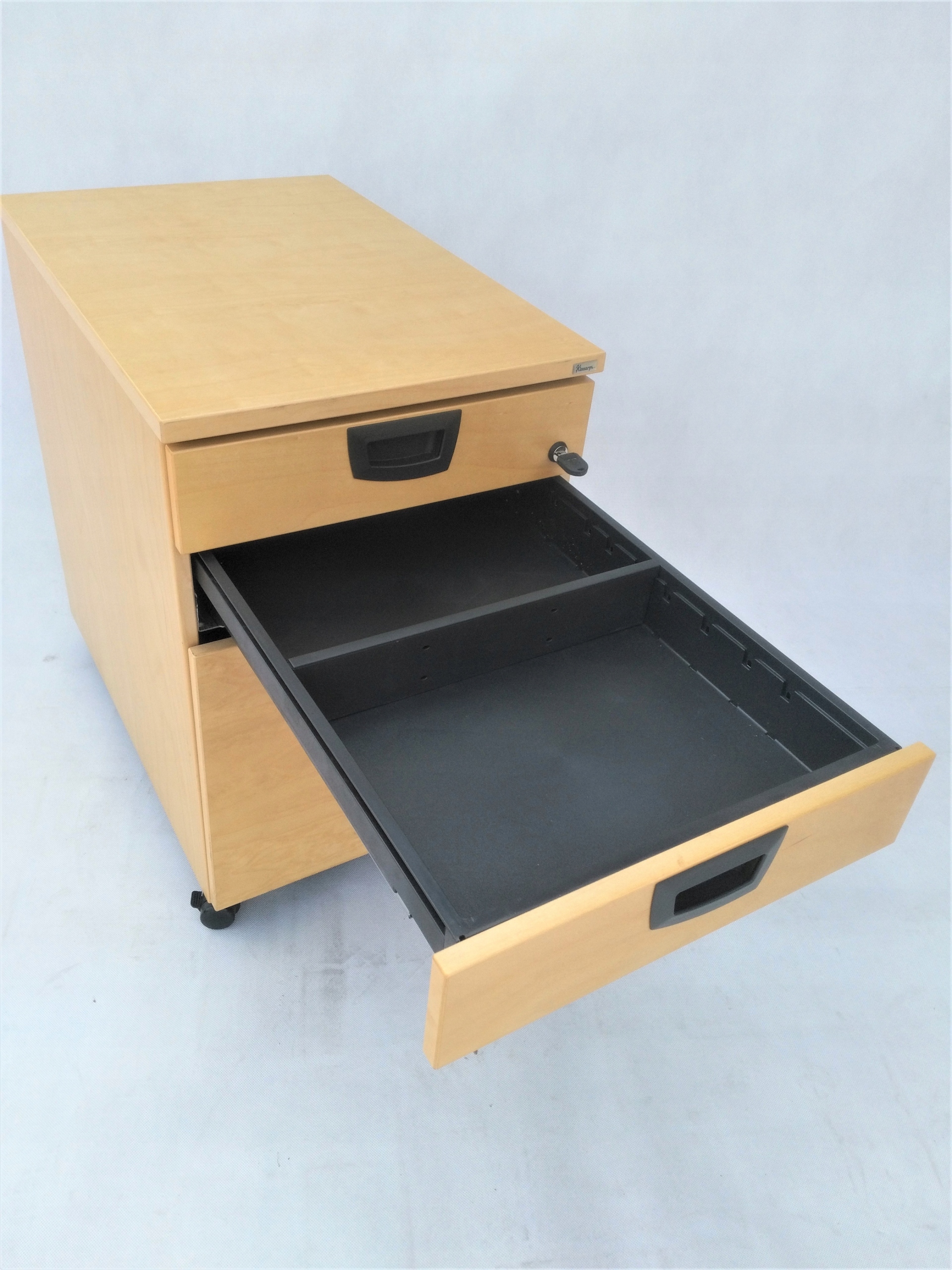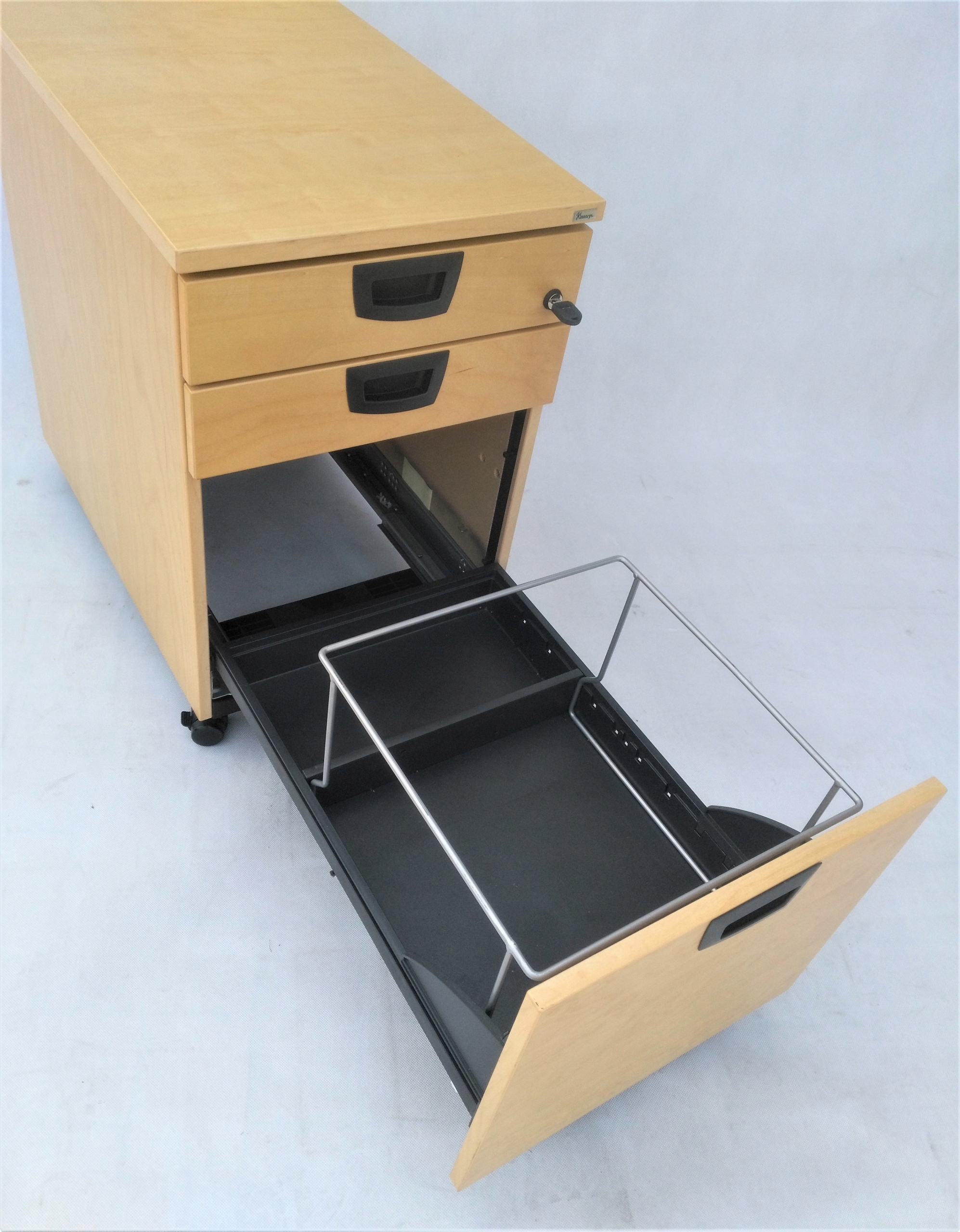 Контейнер, виготовлений компанією Шведський бренд Kinnarps виготовлений з високоякісних матеріалів, що робить його придатним не тільки для домашнього використання, але і для інтенсивного використання в офісних приміщеннях. Органайзер має 3 шухляди, які допоможуть вам упорядкувати офісні речі. У нижній частині контейнера є коліщатка, які дозволяють його вільно переміщати, а можливість фіксації дозволяє стабільно розташувати в просторі під столом. Усе заблоковано.