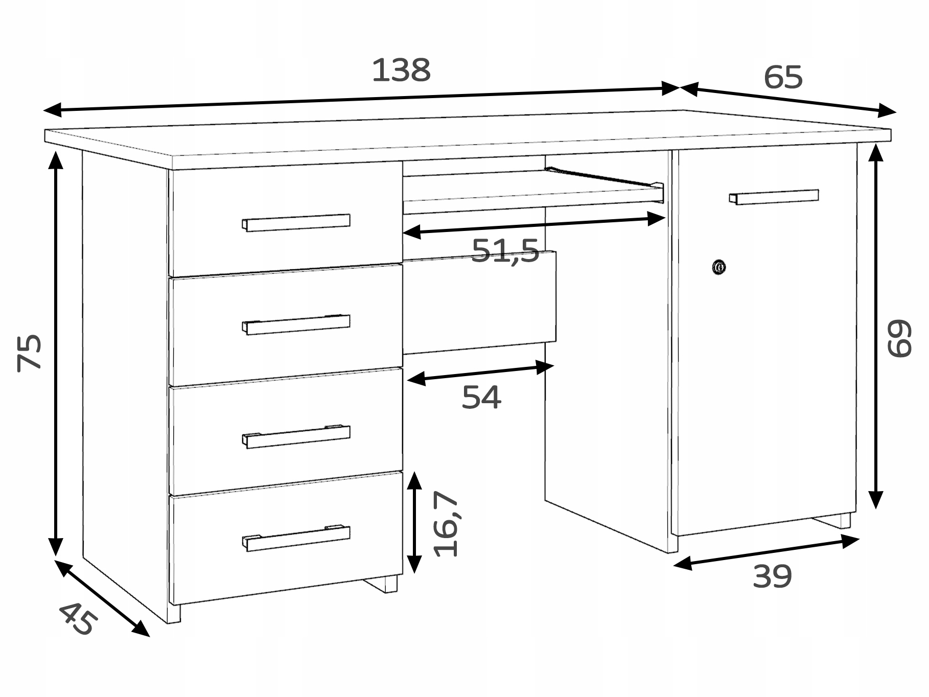 Довжина стільниці 138 см, ширина 65 см