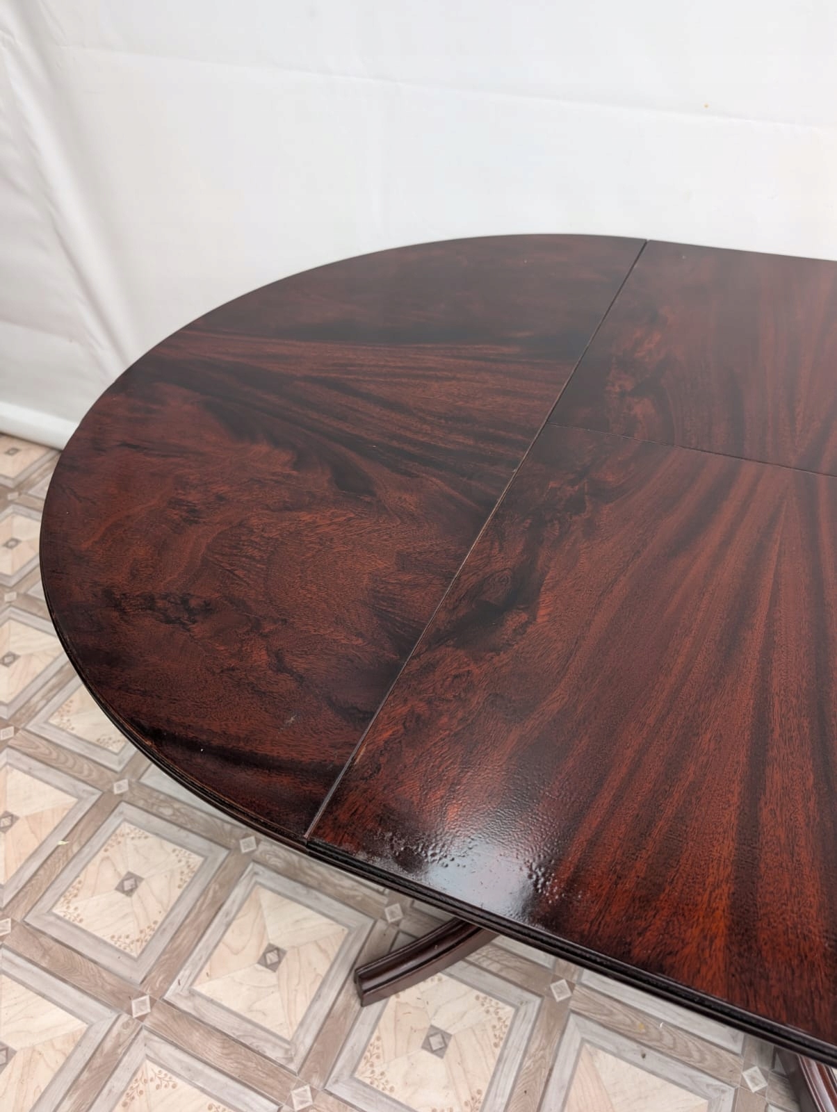 Стіл обшитий шпоном червоного дерева на стійких вигнутих ніжках.