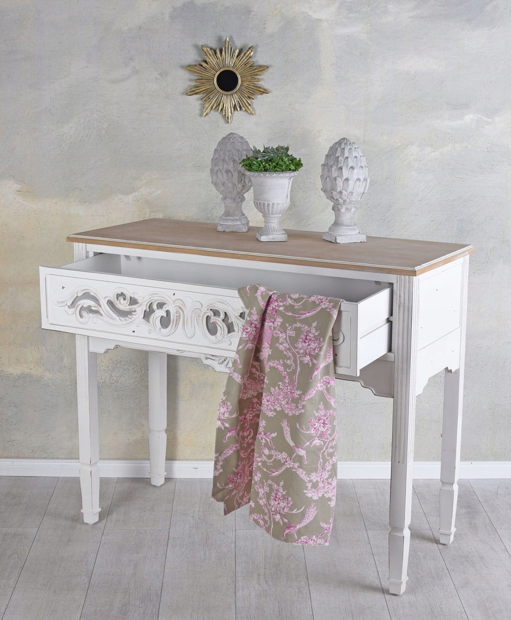 Старинний консольний стіл, дерев'яний настінний стіл, білий