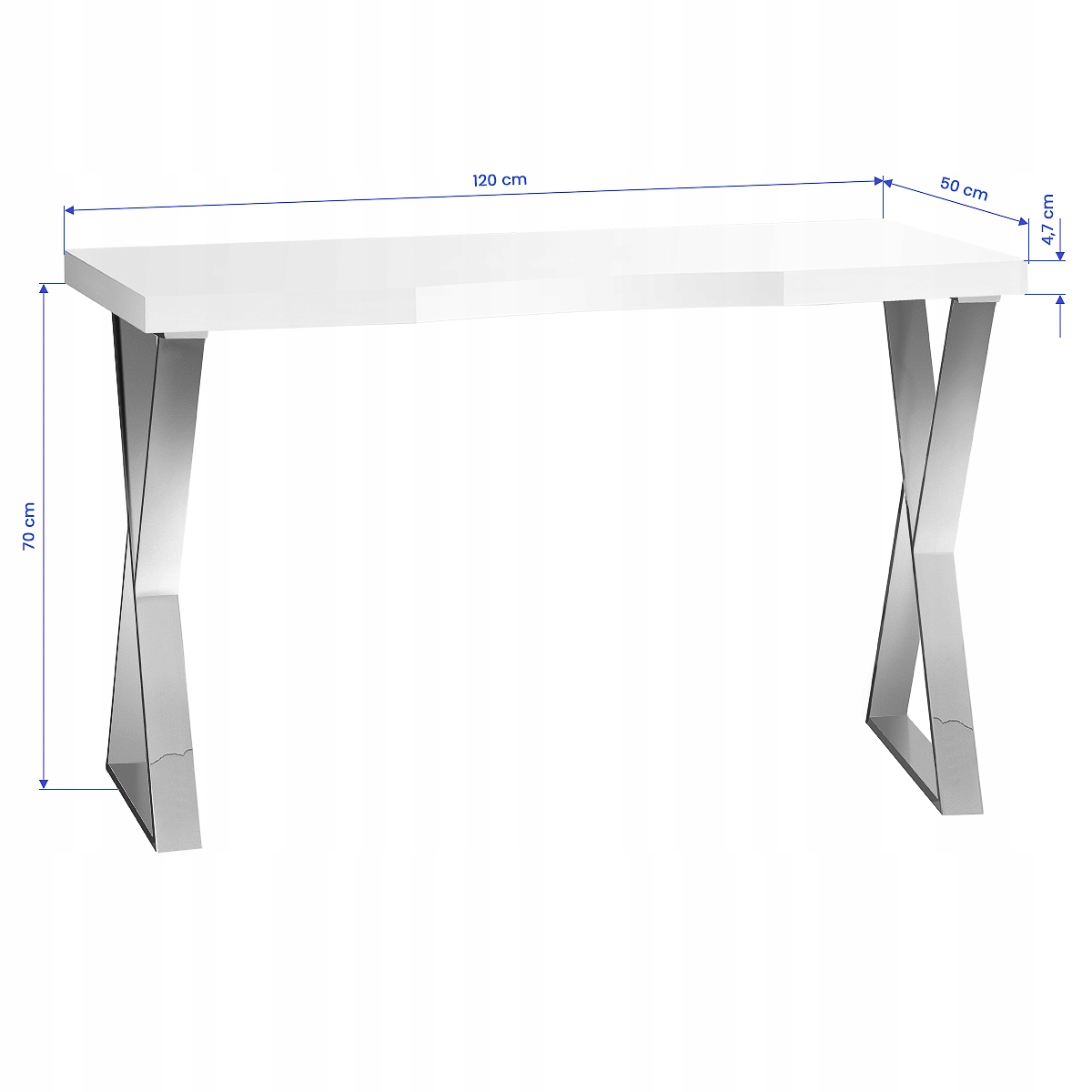 Глянцевий білий верх і геометричні срібні ніжки надають йому легкості та сучасного характеру. Завдяки своїй легкій формі письмовий стіл відмінно впишеться як в затишні, так і в просторі інтер'єри, підкреслюючи їх ексклюзивність. Це відмінна інвестиція в естетику і комфорт повсякденної роботи.