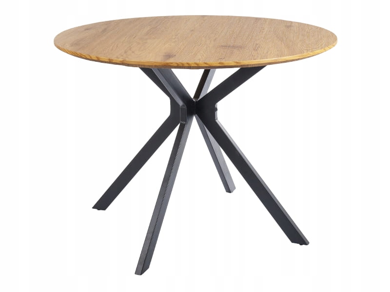 Стіл ASTER - ідеальне рішення для інтер'єрів, оформлених в стилі лофт і модерн. Стільниця має круглу форму і виготовлена з плити МДФ, покритої дубовим шпоном. Рама виготовлена з цікаво звареного чорного металу. Стіл надзвичайно міцний і міцний, і в той же час виглядає сучасно і оригінально. Ці меблі сподобаються людям, які цінують природу та люблять поєднання металу та дерева.