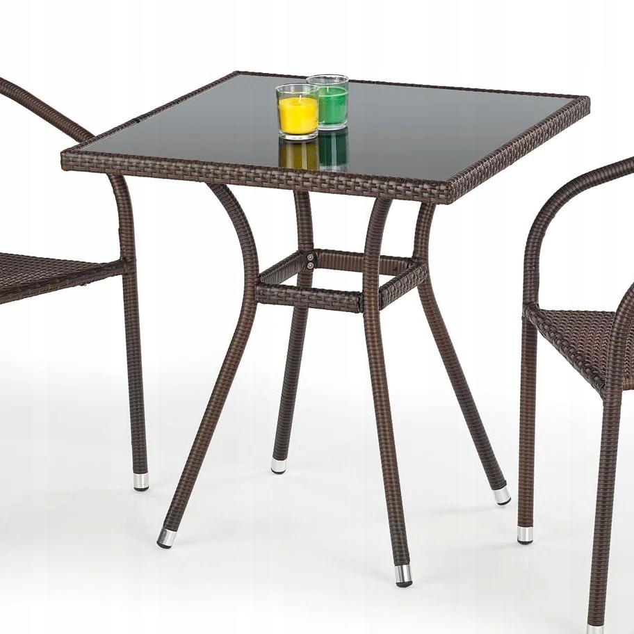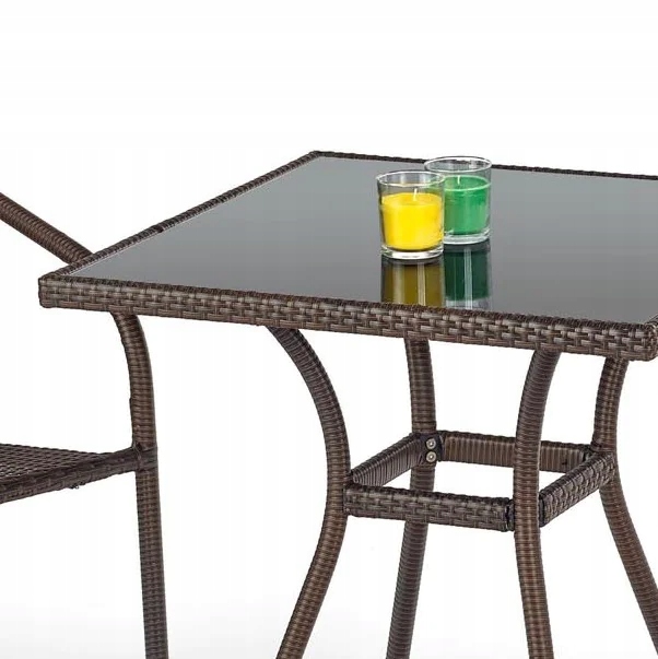 Стіл із скляного ротанга для балкона на терасі MOBIL Чорний Темно-коричневий Halmar