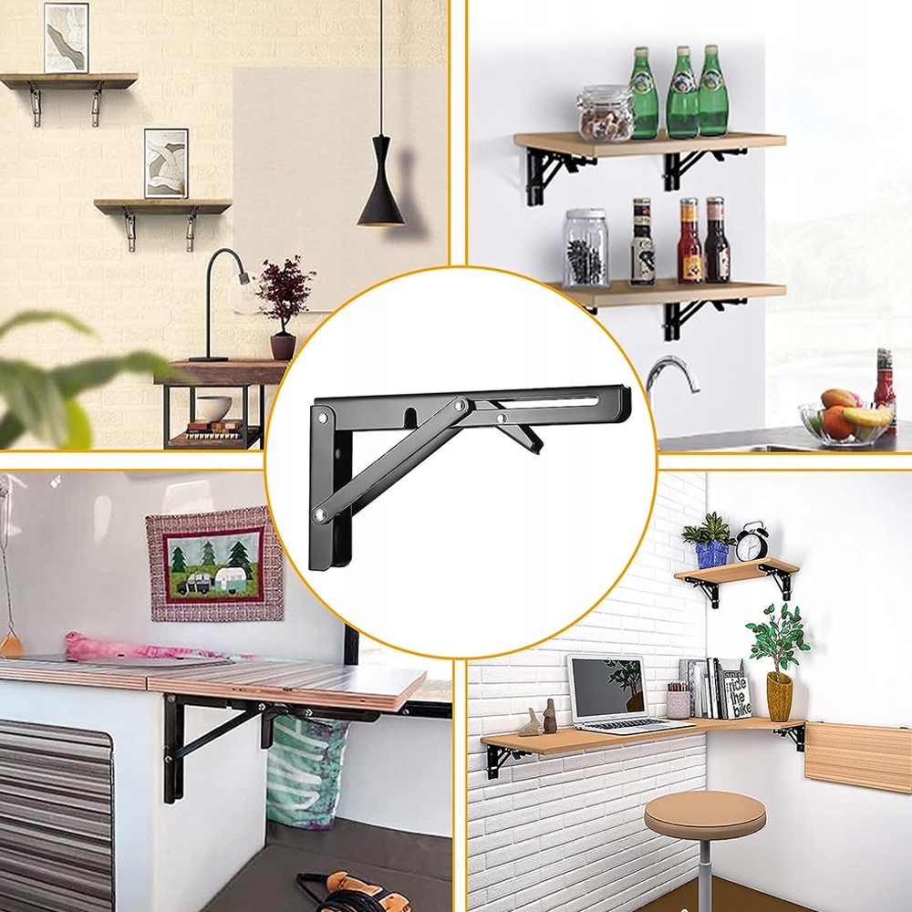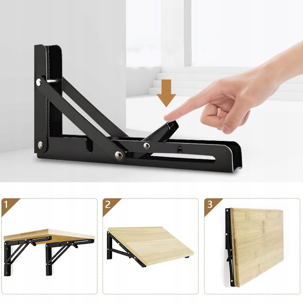-Складні кронштейни виготовлені з обпаленої холоднокатаної сталі з гладкою поверхнею, стійкістю до корозії, іржі та кислотостійкості, і можуть використовуватися протягом тривалого часу. Максимальне навантаження може бути до 80 кг.