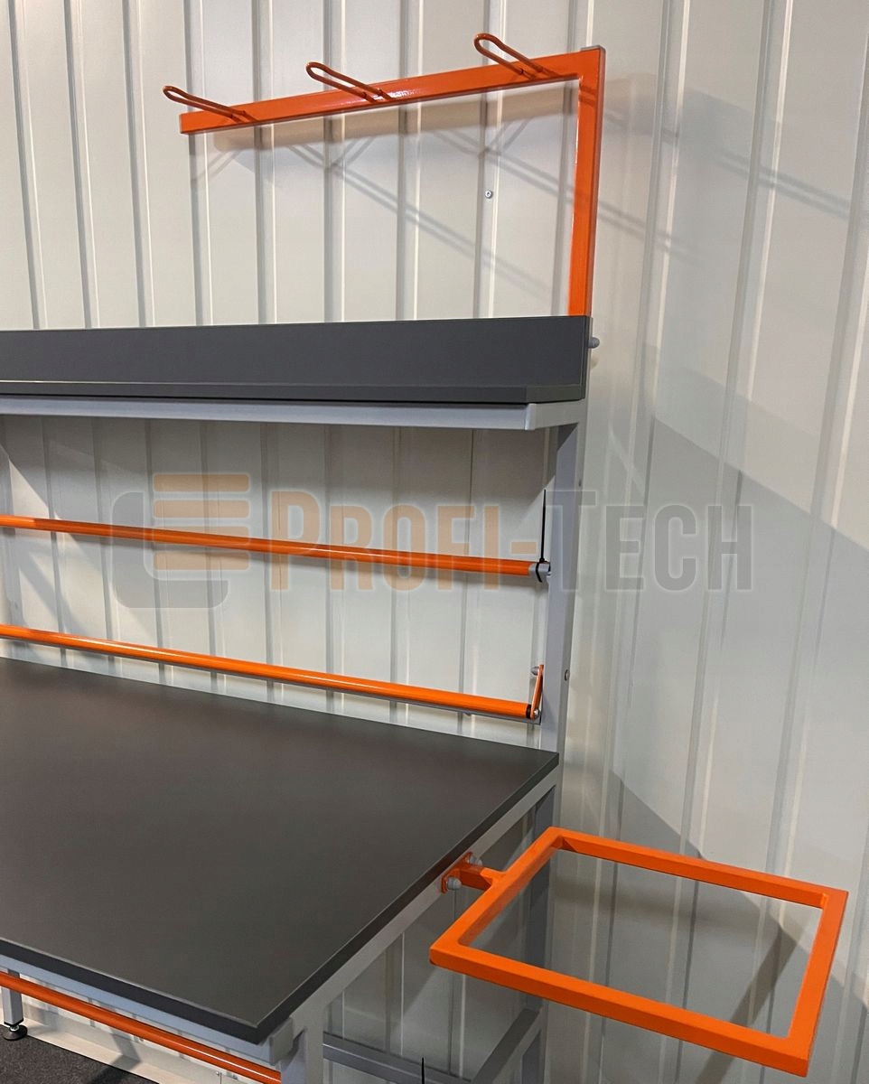 Столи та підставки виготовлені зі сталевих профілів, які були довго захищені порошковим покриттям, краї профілів заповнені дюбелями ПВХ.