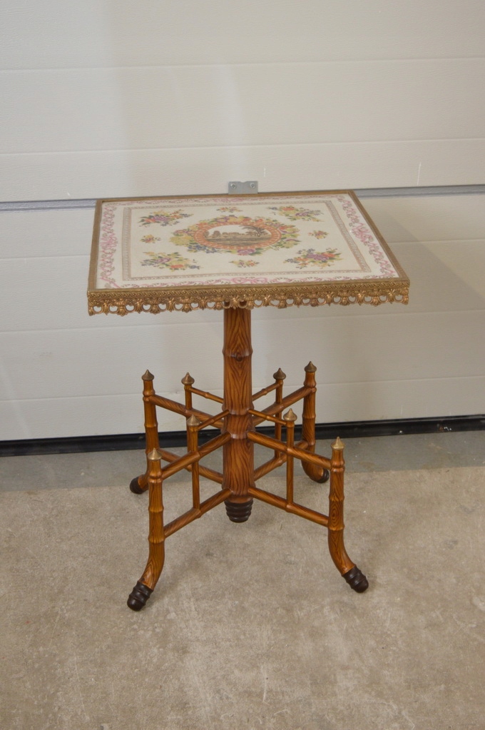 Привіт, сьогодні я хотів би запропонувати вам старовинний дерев’яний стіл із бронзовою фурнітурою, порцеляновою стільницею та дерев’яною конструкцією.