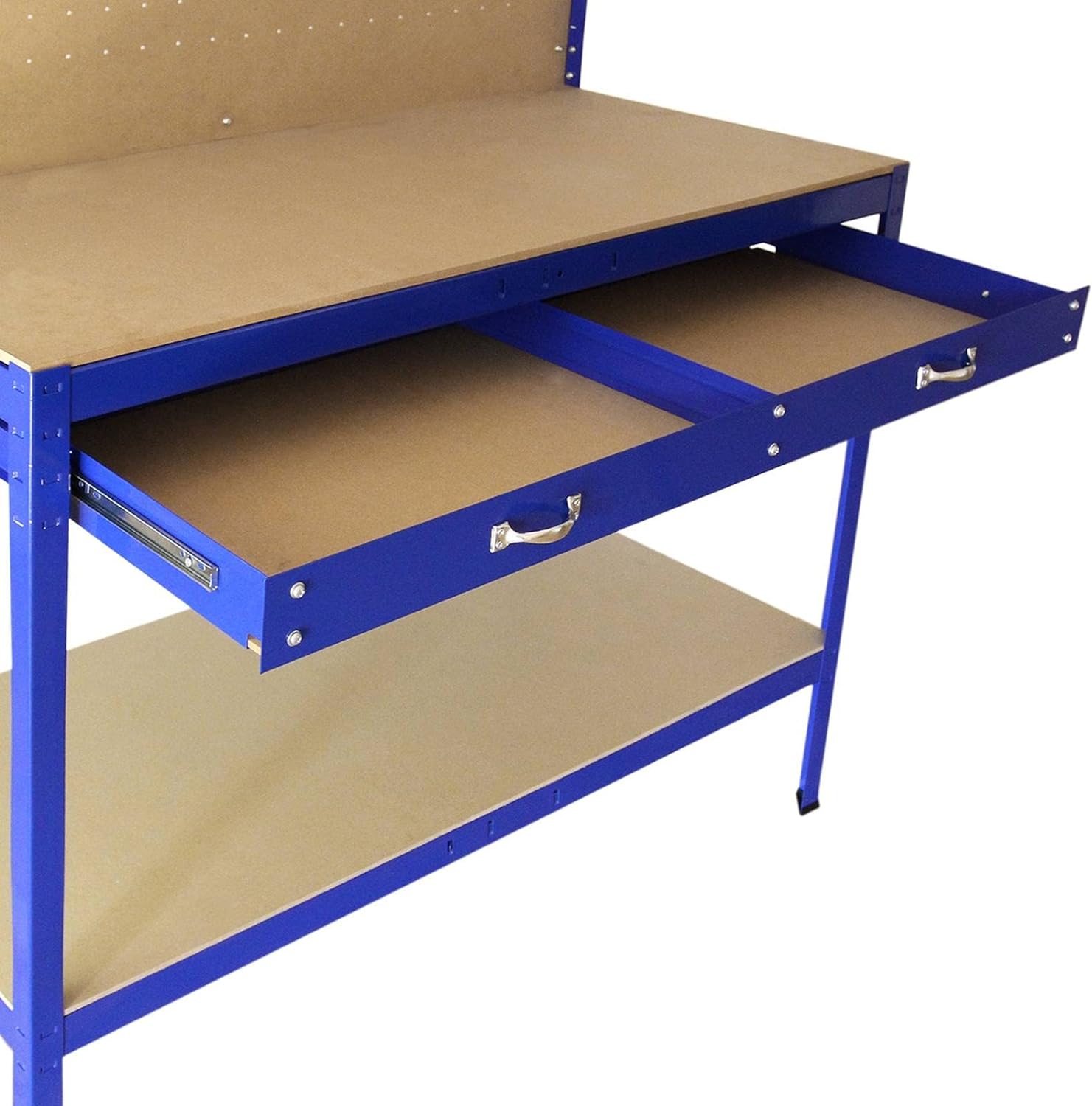 Велика стільниця 1200 х 600 мм, на якій можна легко розмістити всі необхідні інструменти та матеріали. Він оснащений практичною шухлядою, де можна зберігати дрібні аксесуари, інструменти або засоби для догляду. Під стільницею є полиця, де можна зберігати інструменти трохи більшого розміру, оскільки її вантажопідйомність становить 80 кг.Стінка за стільницею дозволяє повісити гачки, завдяки яким все буде під рукою, що дозволить ваша робота набагато простіше і швидше. Ви отримаєте легкий доступ до того, що вам потрібно.