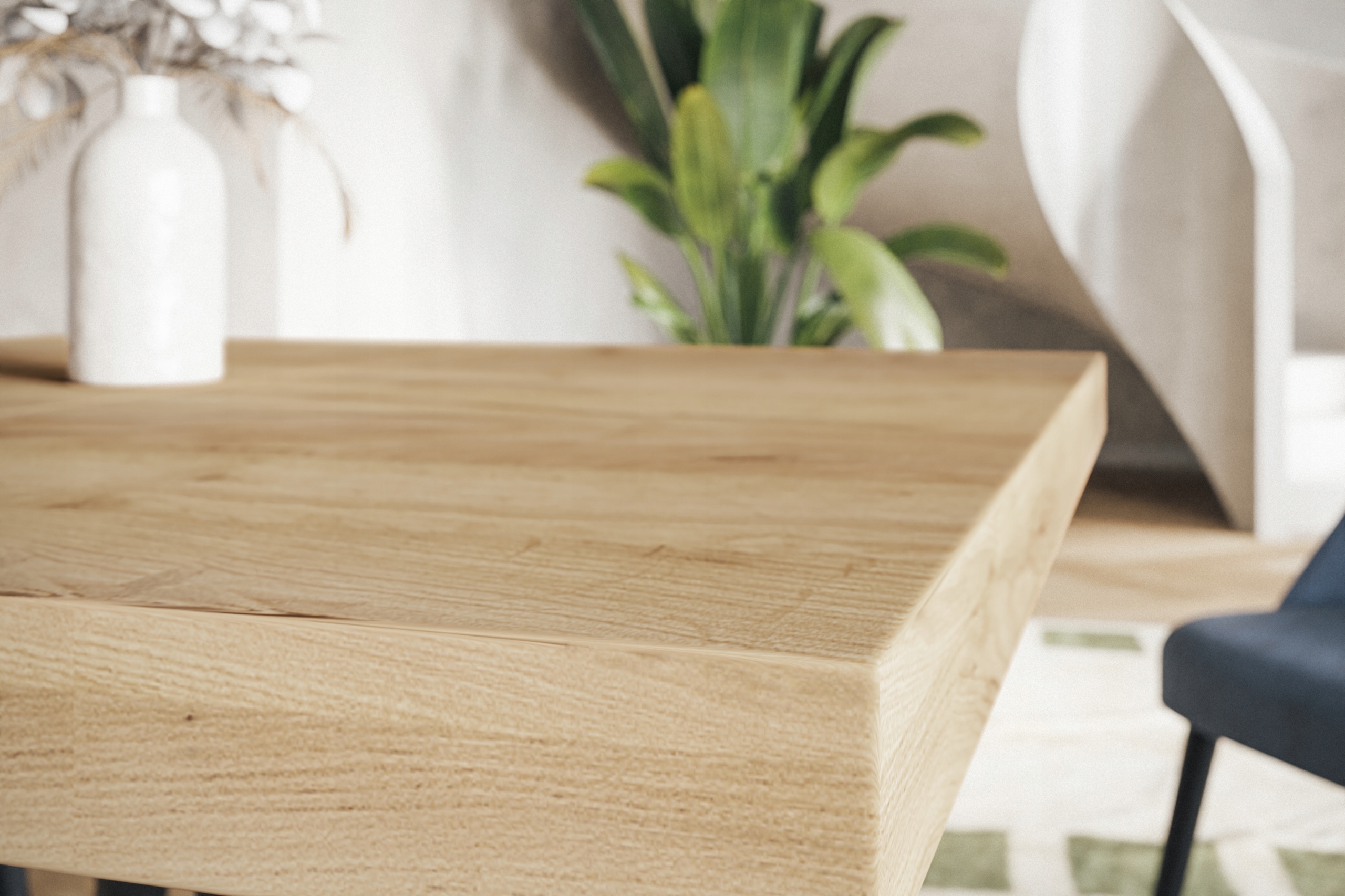 Елегантний стіл-лофт з дерев'яними ніжками та стільницею з ламінованої дошки.