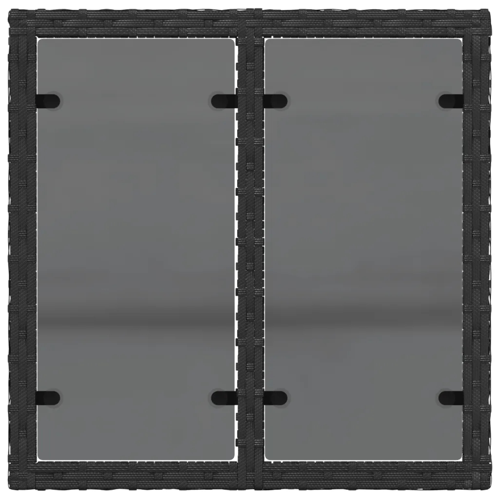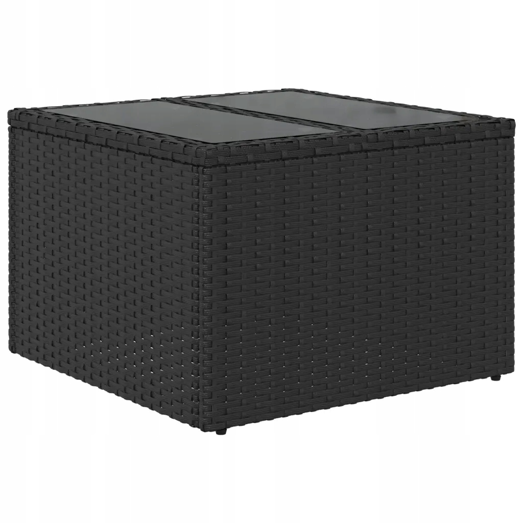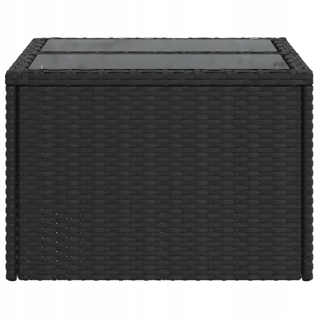 Стіл садовий зі скляною стільницею, чорний, 55x55x37 см, ПЕ ротанг