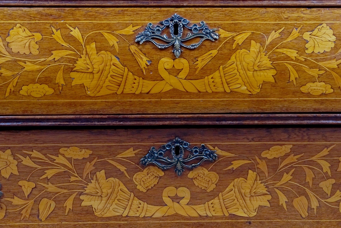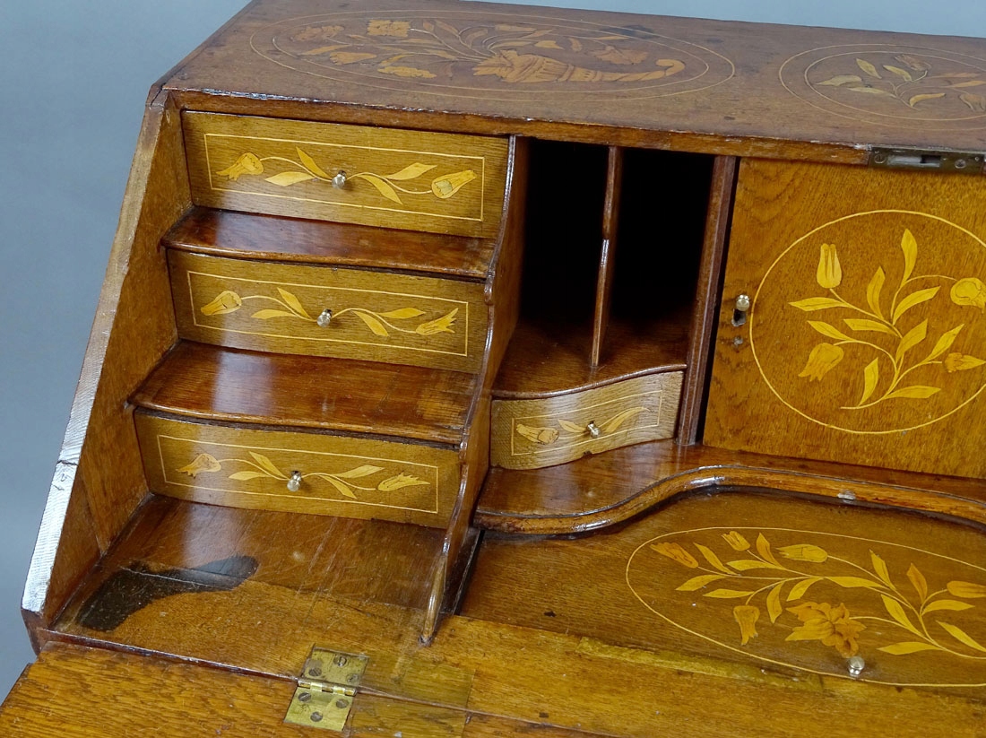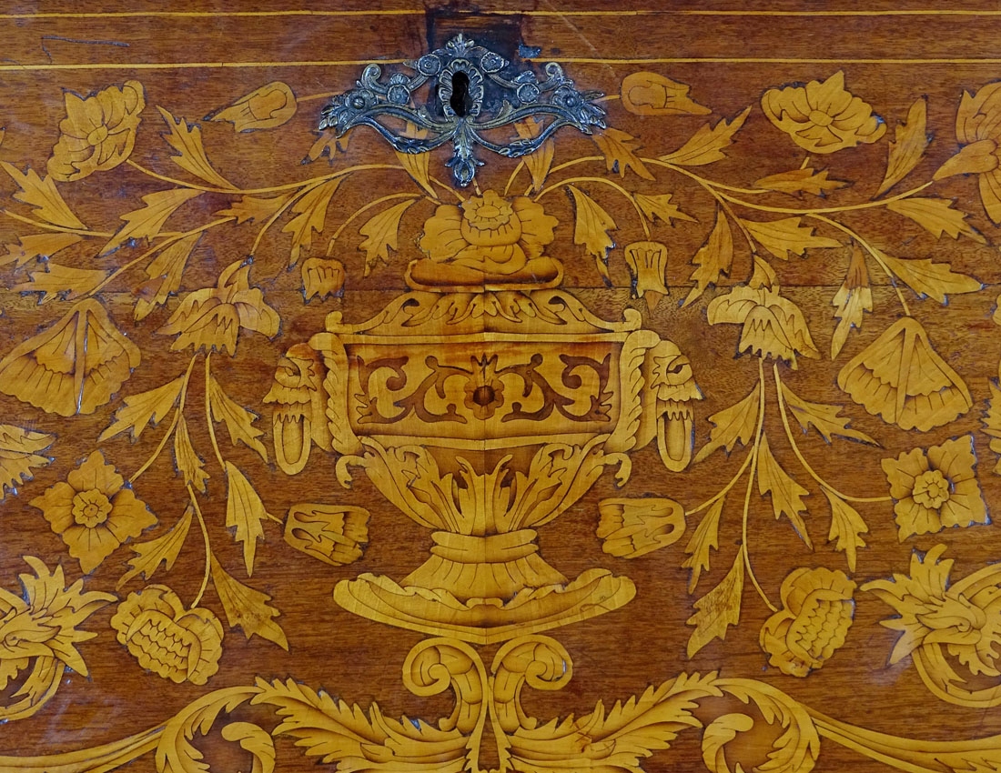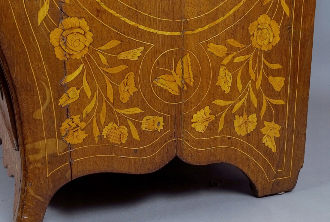 Конструкція з дуба, маркетрі з різних порід деревини, латунна фурнітура, початок 19 століття.