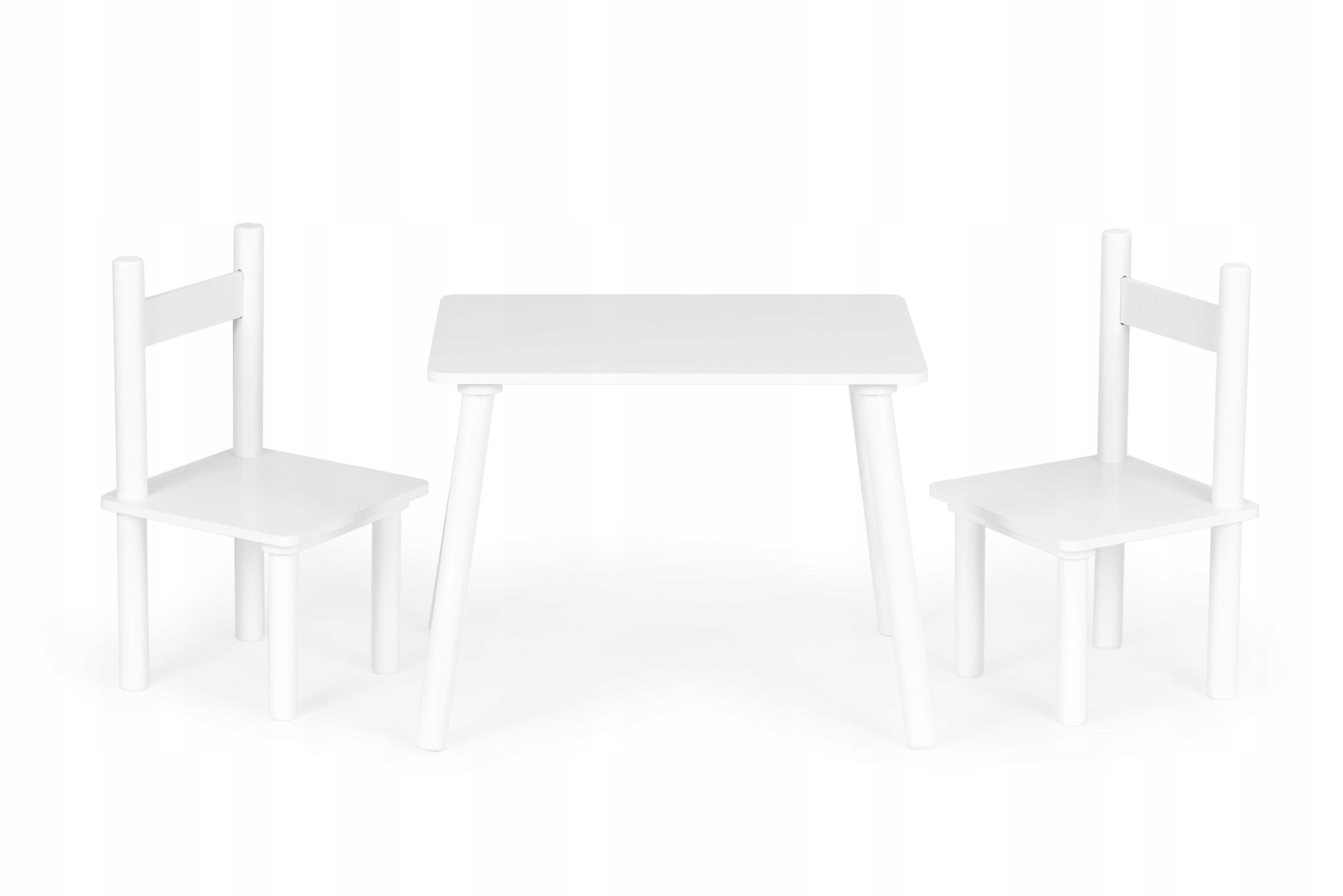 Чудовий набір для всіх дітей, завдяки простій формі він чудово впишеться в інтер'єр дитячої кімнати, ігрової кімнати або кімнати очікування. Стіл має ніжки з масиву сосни, які надають йому стійкості, стільниця виготовлена з МДФ, що робить його простим у догляді та стійким до пошкоджень/подряпин. Набір доповнено двома стійкими та зручними стільцями.