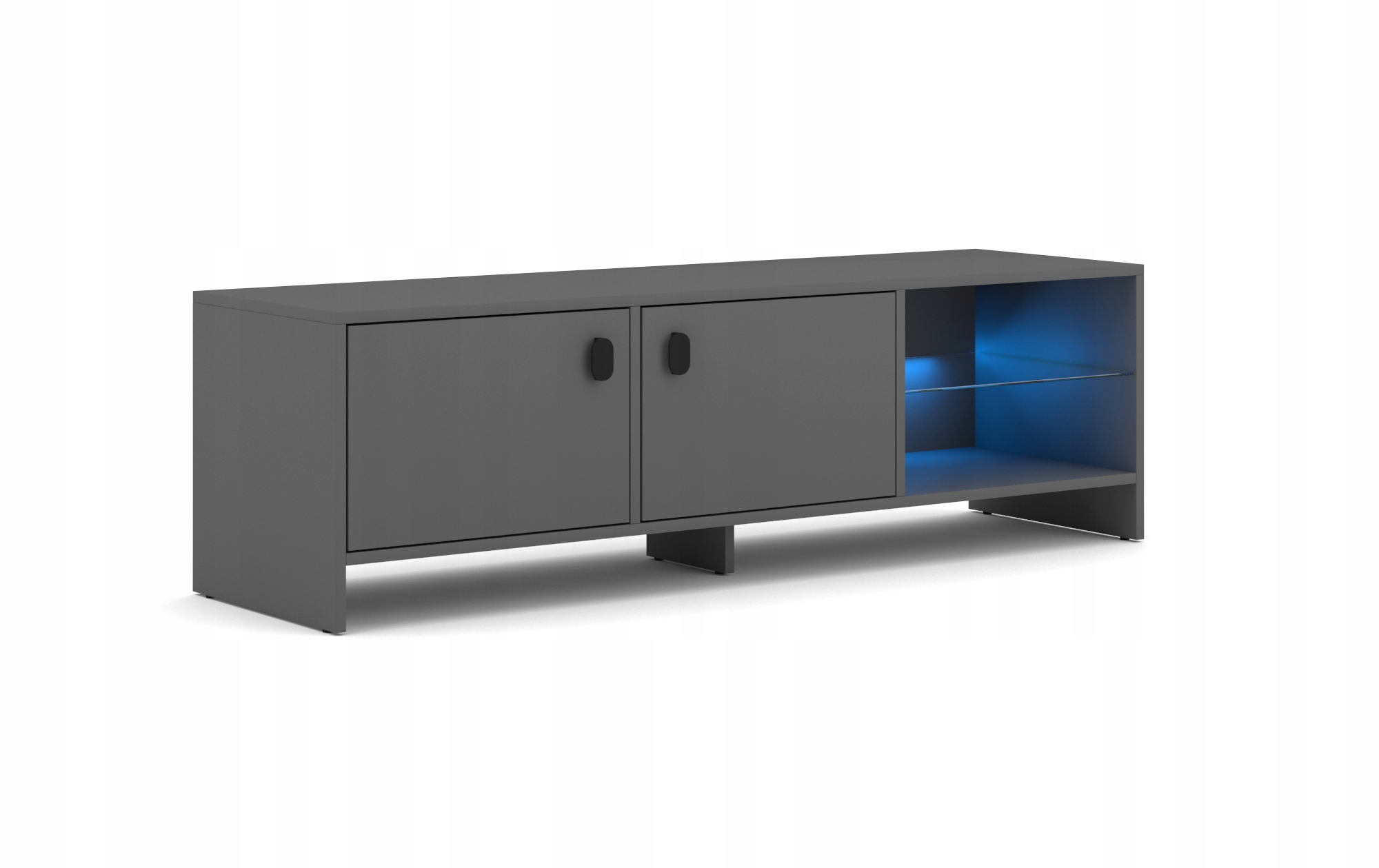 Сучасна тумба, тумба під ТВ Duo, 140 см, сірий матовий зі світлодіодним підсвічуванням - функціональна та модна вітальня у вас під рукою