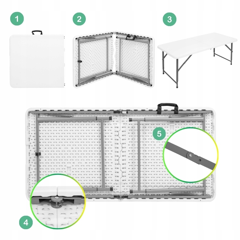 ✅ ФУНКЦІЯ СКЛАДАННЯ: У складеному стані стіл набуває форми функціональної валізи, яка займає мало місця. Після розкладання стіл закривається замками, що гарантує безпечне використання