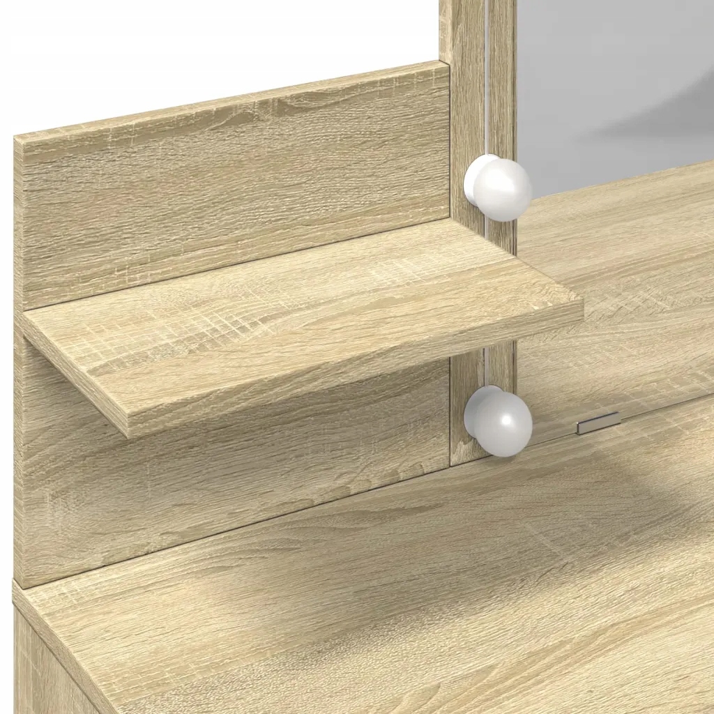Стіл з дзеркальним туалетним столиком із світлодіодним освітленням, дуб Sonoma, 100x40x130 см