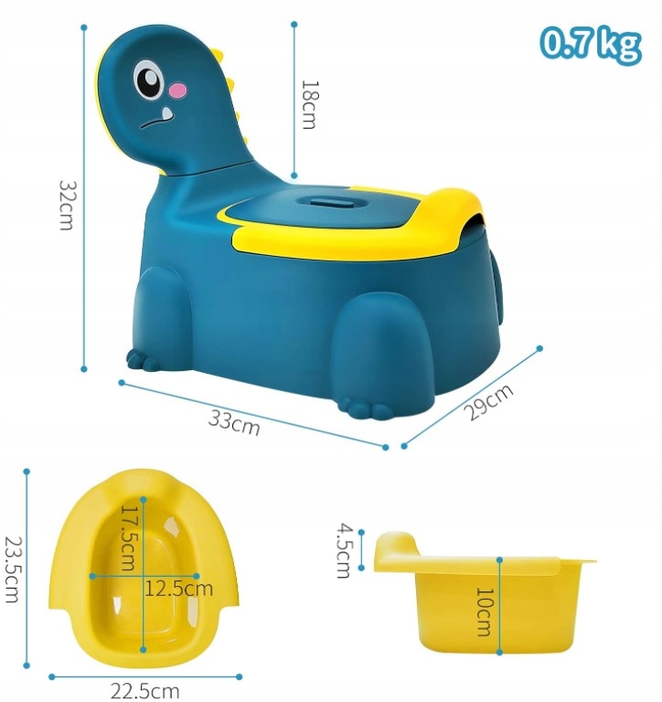 - Чудовий подарунок - красива форма динозавра робить горщик популярним серед дітей і батьків. Цей туалет для привчання до горщика може стати чудовим подарунком для друзів і рідних. Завдяки кумедній формі цей дорожній горщик ідеально підходить для будь-якої дитини, і його легко навчитися.