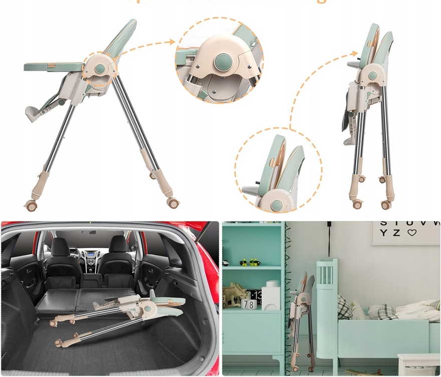 Стільчик для годування 3в1 РЕМЕНІ СКЛАДНІ КОЛЕСА МНОГОФУНКЦІОНАЛЬНИЙ